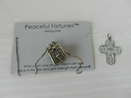 (A13) Vintage Sterling silver Prayer box pendant BN and sterling crucifix