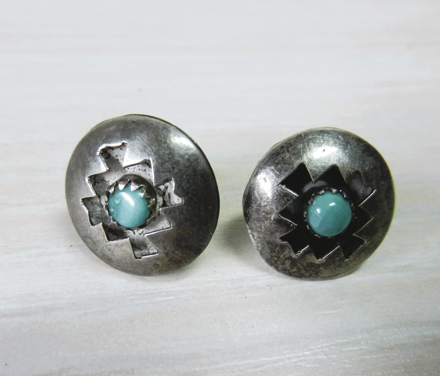 (A2) Vintage Sterling and Turquoise Shadowbox Stud Earrings