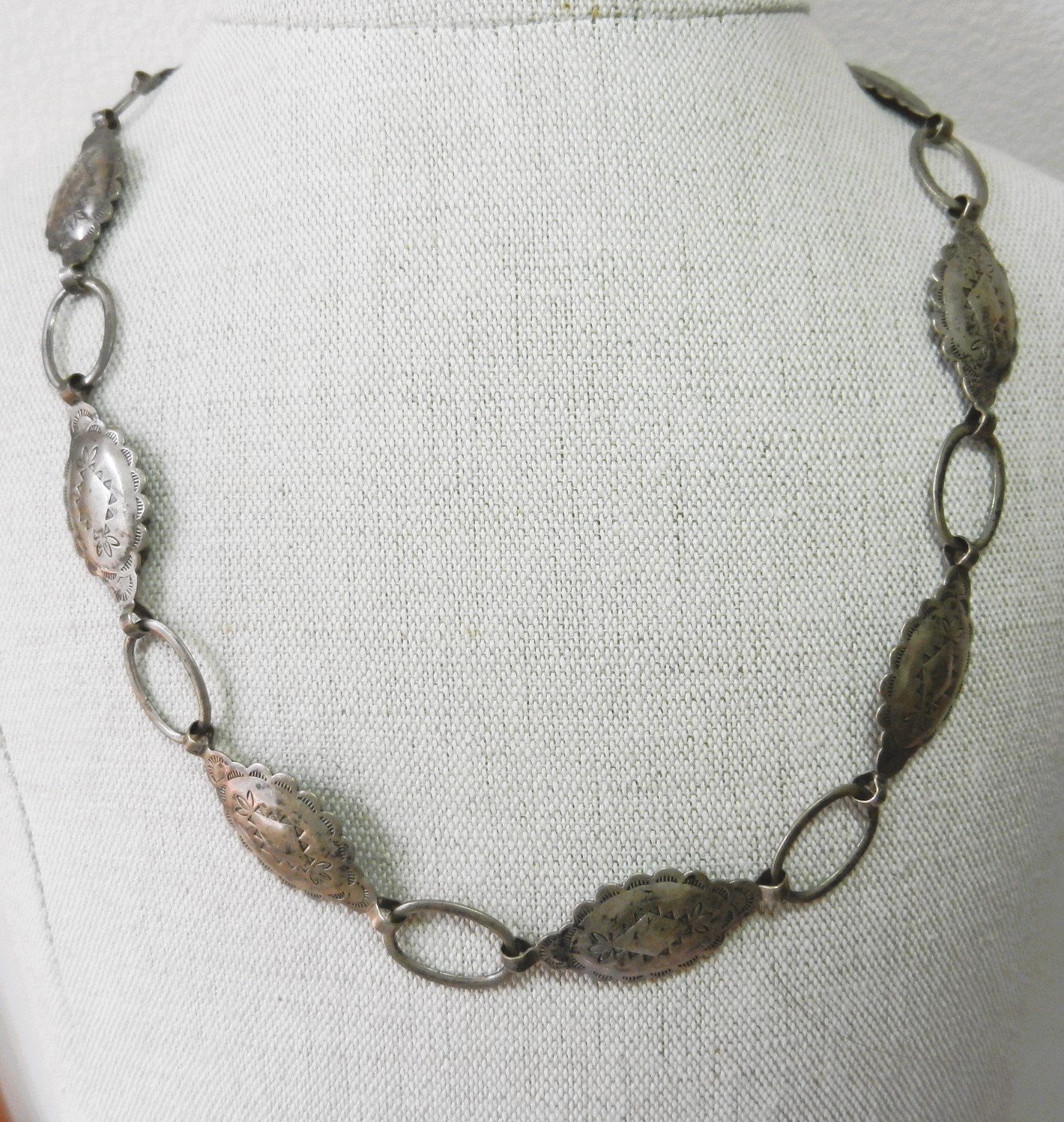(A20) Vintage Unmarked tested Sterling Fred Harvey Era hammered concho necklace