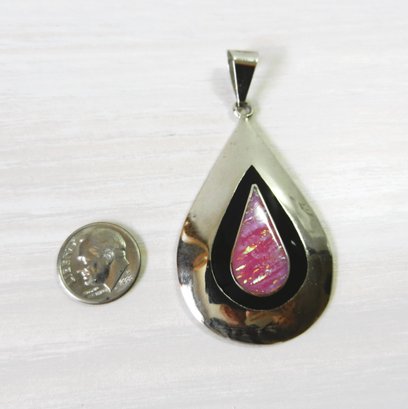 (A23) Vintage Sterling silver Mexico Pink fire Opal Teardrop Onyx Pendant