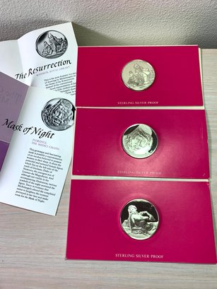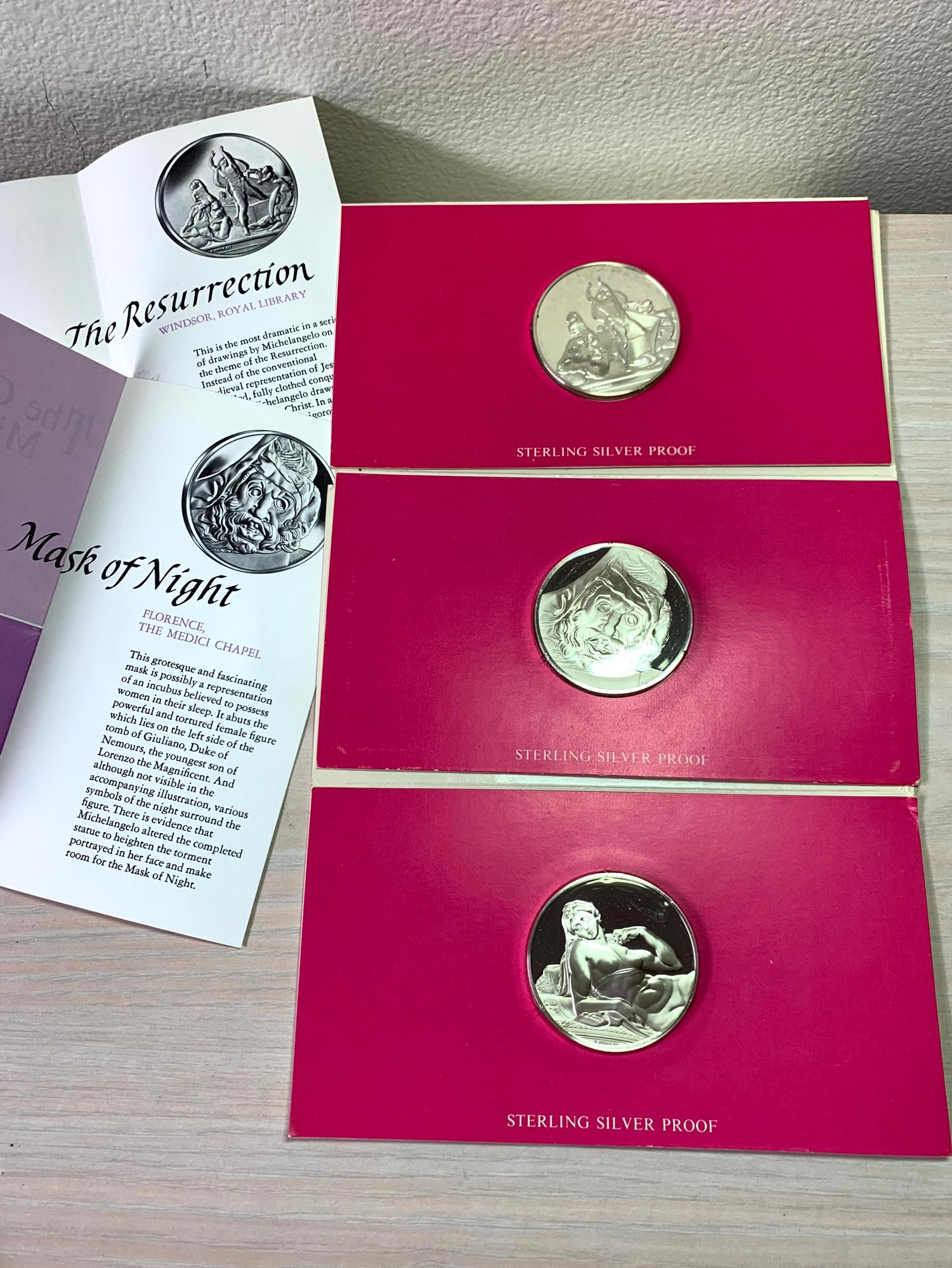 (A41) Vintage 3 Sterling Silver Genius of Michelangelo Medals sealed inc Resurrection