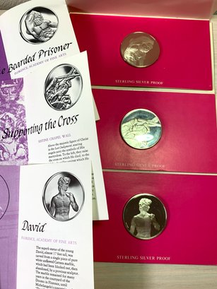(A43) Vintage 3 Sterling Silver Genius of Michelangelo Medals sealed inc David