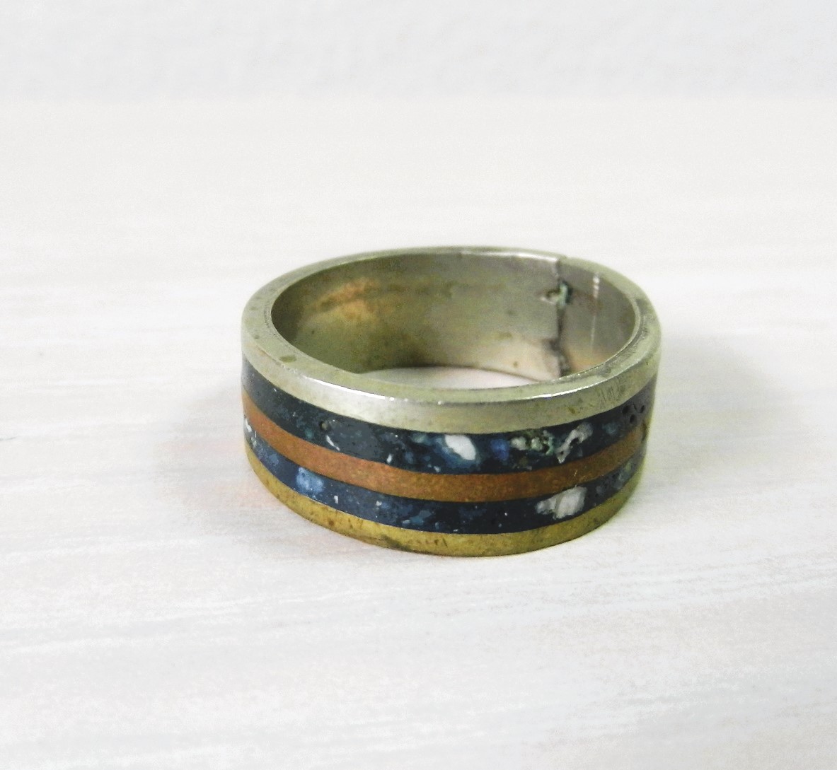 (A9) Vintage Unmarked Silver/Brass/Copper/Stone ring Mexico