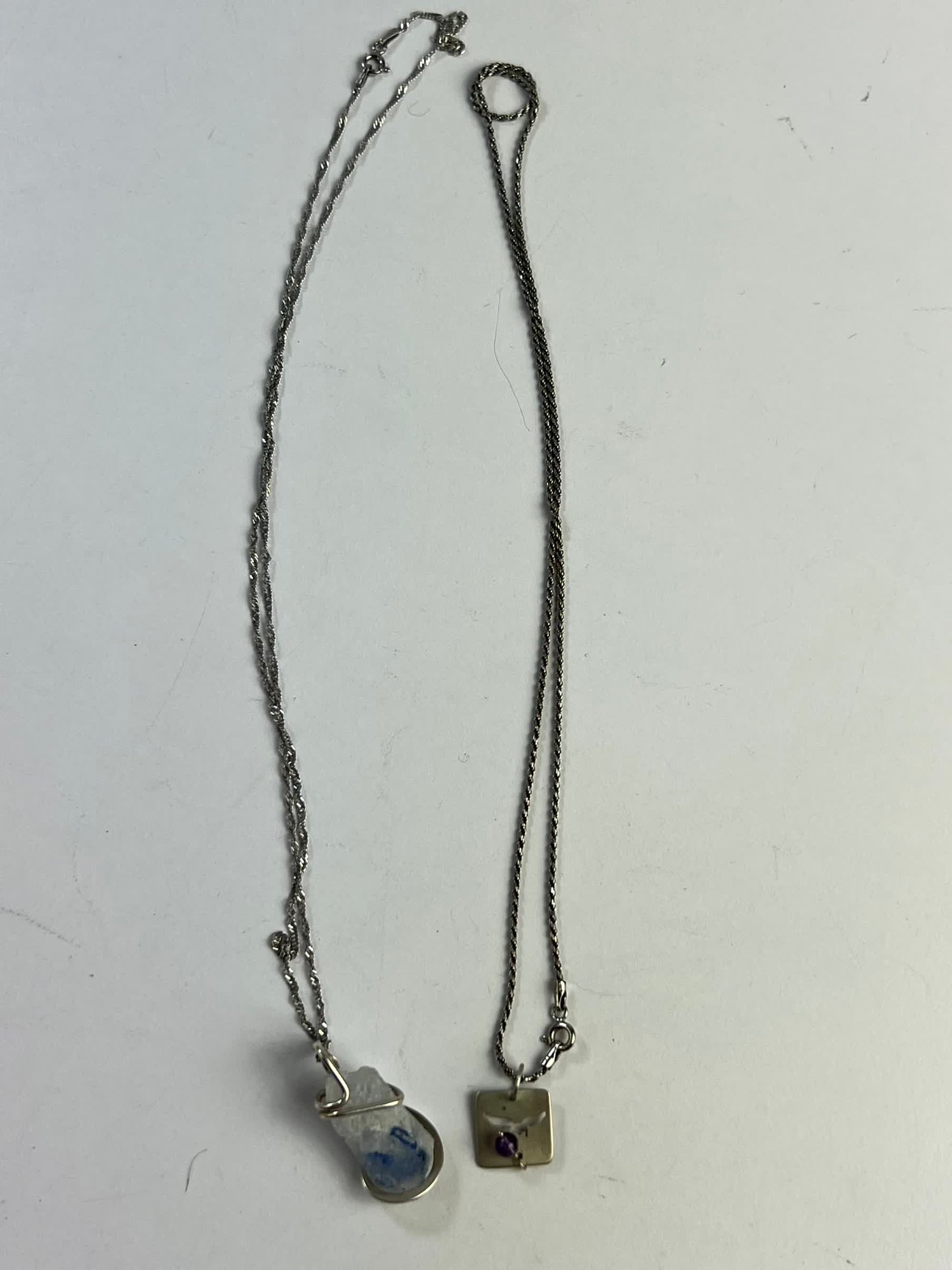 Pair Of Modern Sterling Necklaces - Crystal Mount And Flying Creature 10.3g