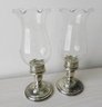 (B4) Pair of Frank M. Whiting Sterling Silver and Glass Hurricane Lamps - weighted
