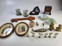 I - Box Lot Art Japanese Cups Vintage Oval Frames Fire King Artist Figures Timex Watch Etc See Pics