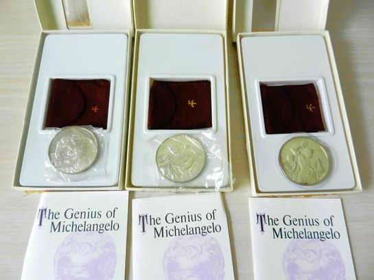 (C2) 3 Franklin Mint Genius of Michelangelo Sterling Silver Medals inc Isiah
