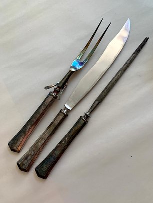 (D10) Vintage Universal Carving Knife and fork and Sharpening Steel silver metal