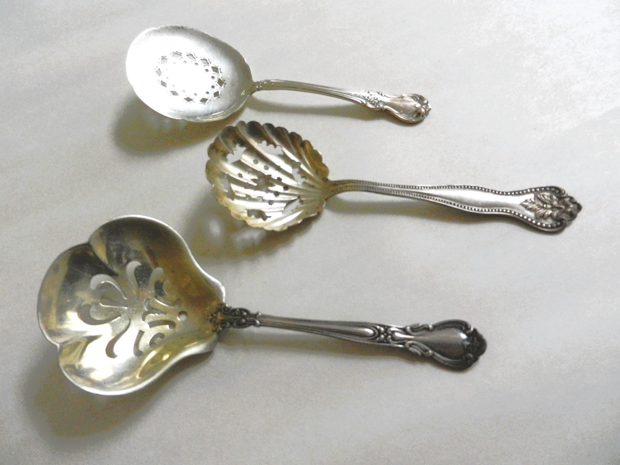 (D13) Vintage 3 Pierced Sterling Silver Spoons