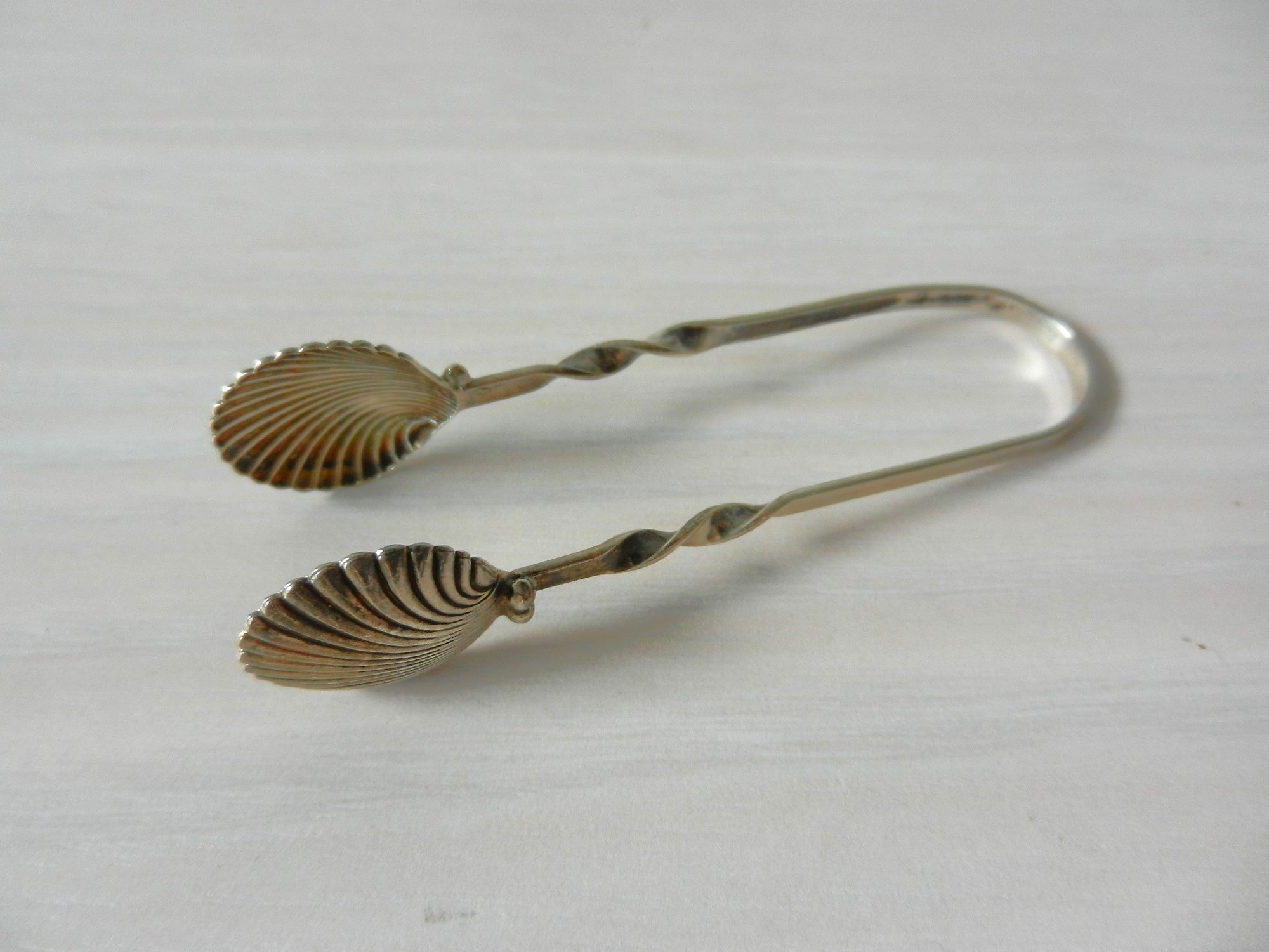 (D18) Vintage Sterling silver clam shell Sugar Tongs