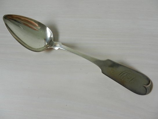 (D19) Vintage Coin Silver fiddle handle Serving Spoon D. Gillis Leonard