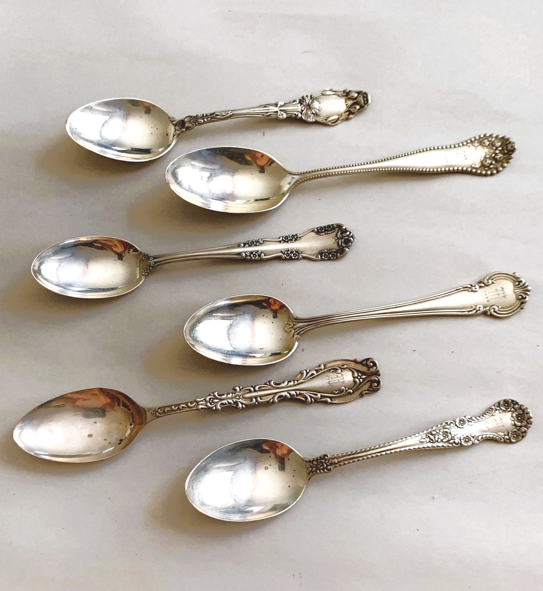 Each one is marked Sterling. Some have monograms. Good condition.