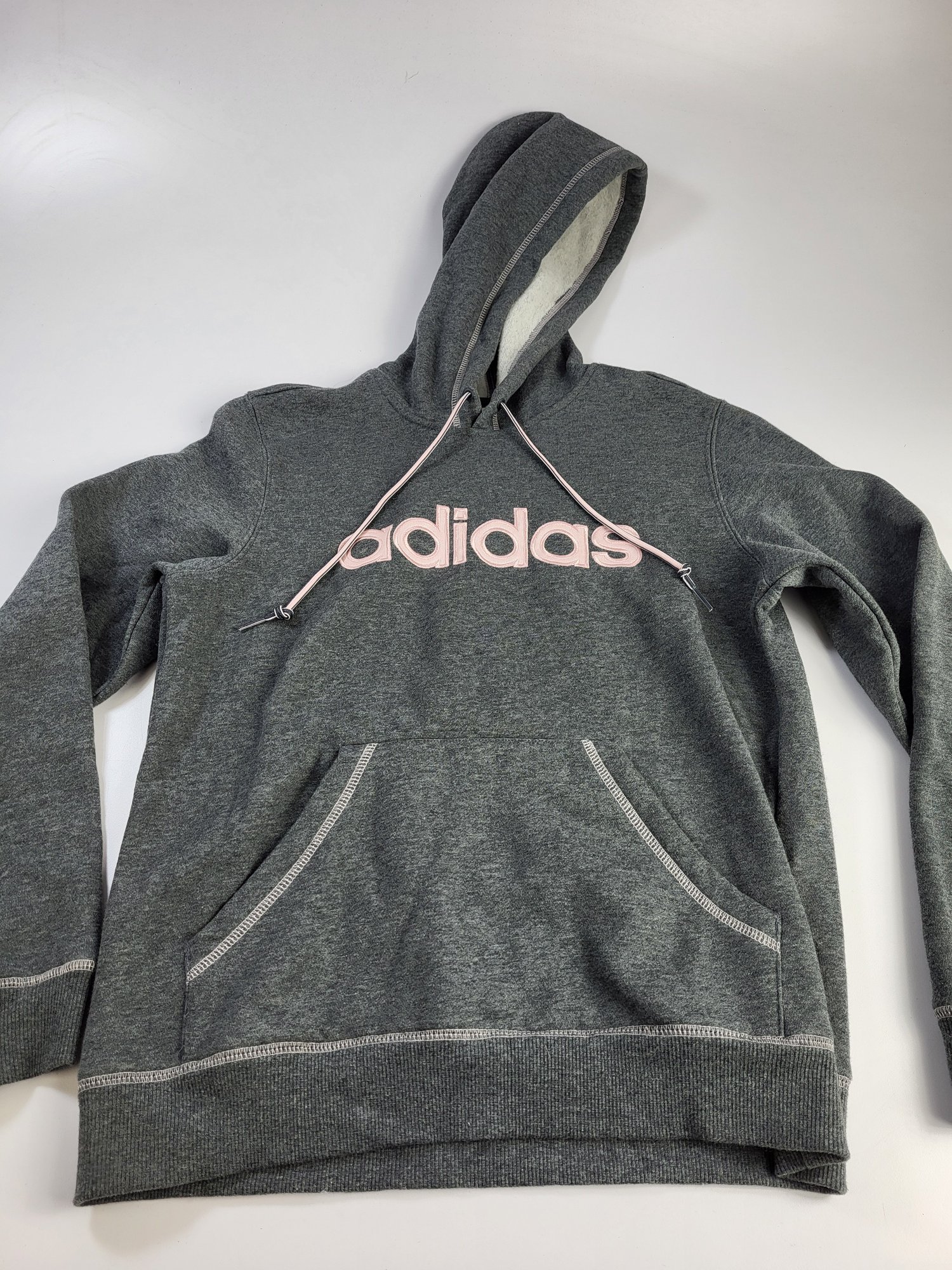E - Addidas Womens Hoody Sweatshirt Medium Sweater Hood Pink Gray