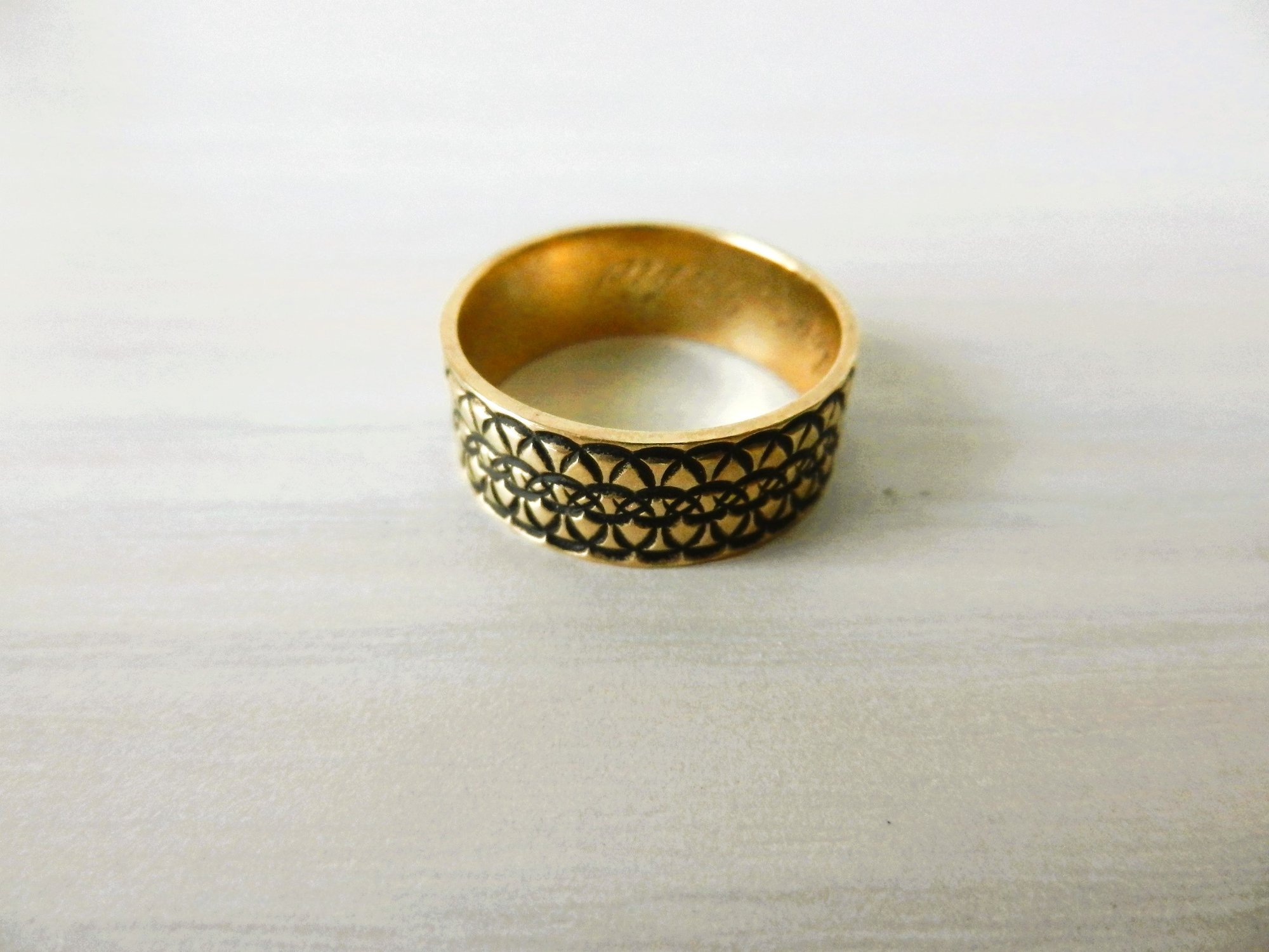 (E10) Vintage 14k gold patterned ring inscribed inside