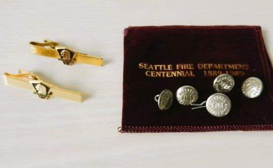 (E14) Vintage Waterbury Repro Seattle Fire Dept Buttons and Seattle Tie Clips