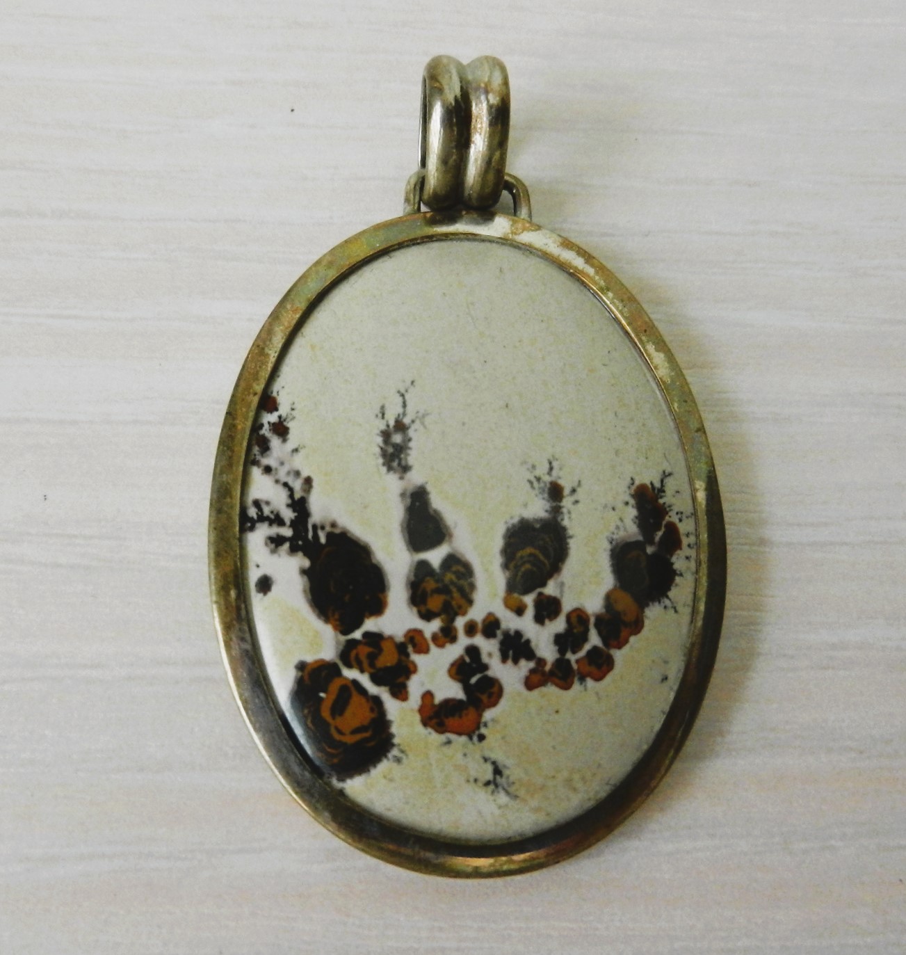 (E7) Vintage Dendrite Agate Pendant with Sterling Silver Mount