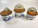L - Vintage German Ceramic Salt Holders With Wooden Tops