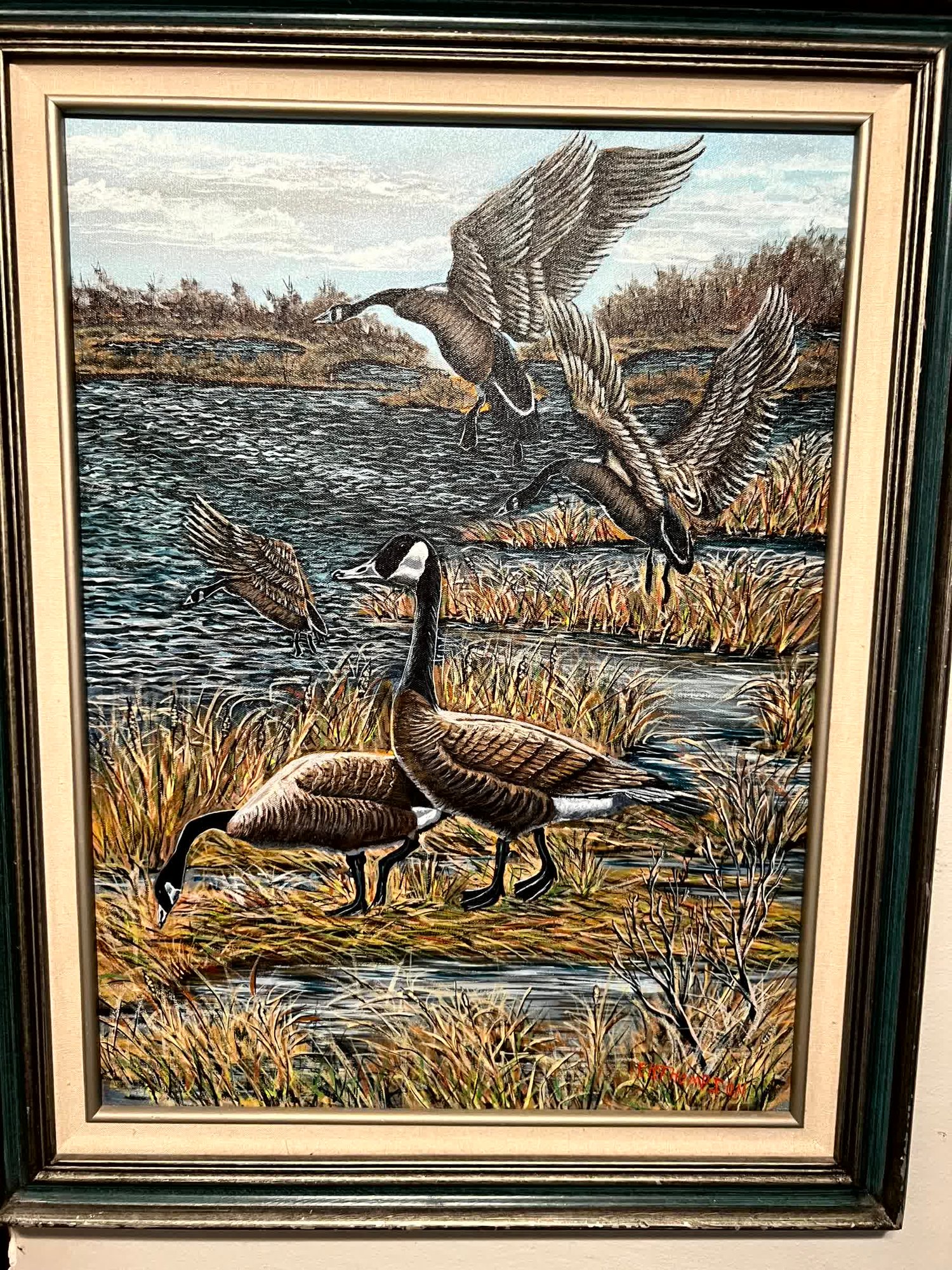 Original Oil On Canvas Painting Of Geese F H Thompson
