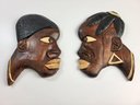 I - Pair Of Wooden African Tribal Art Faces