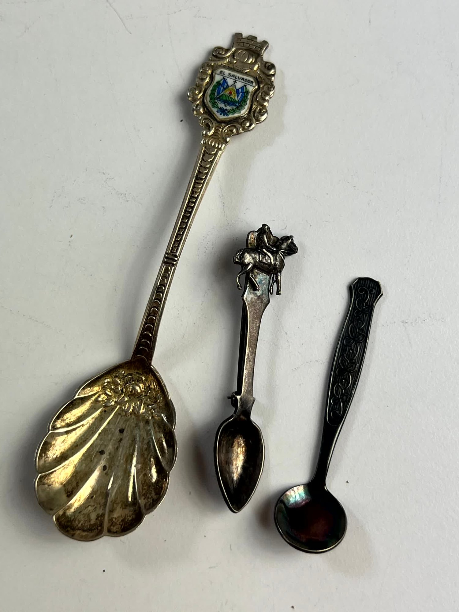 Sterling Silver El Salvador Spoon + Spoon And Horse Pin + Denmark Meka Mini Spoon 23.2g