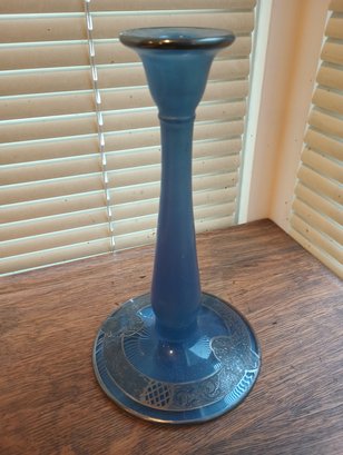 Vintage Blue Glass And Silver Gilt Candlestick