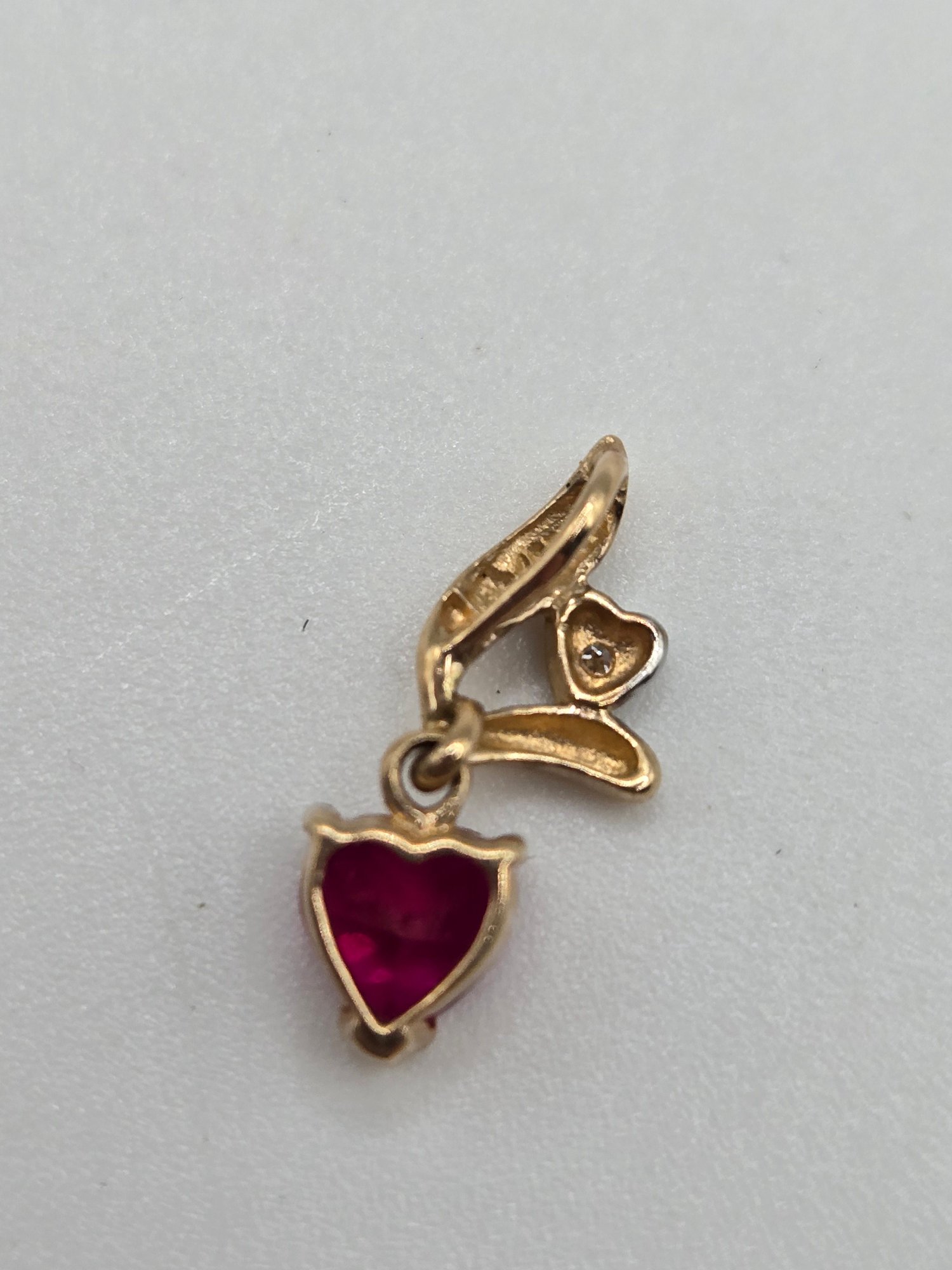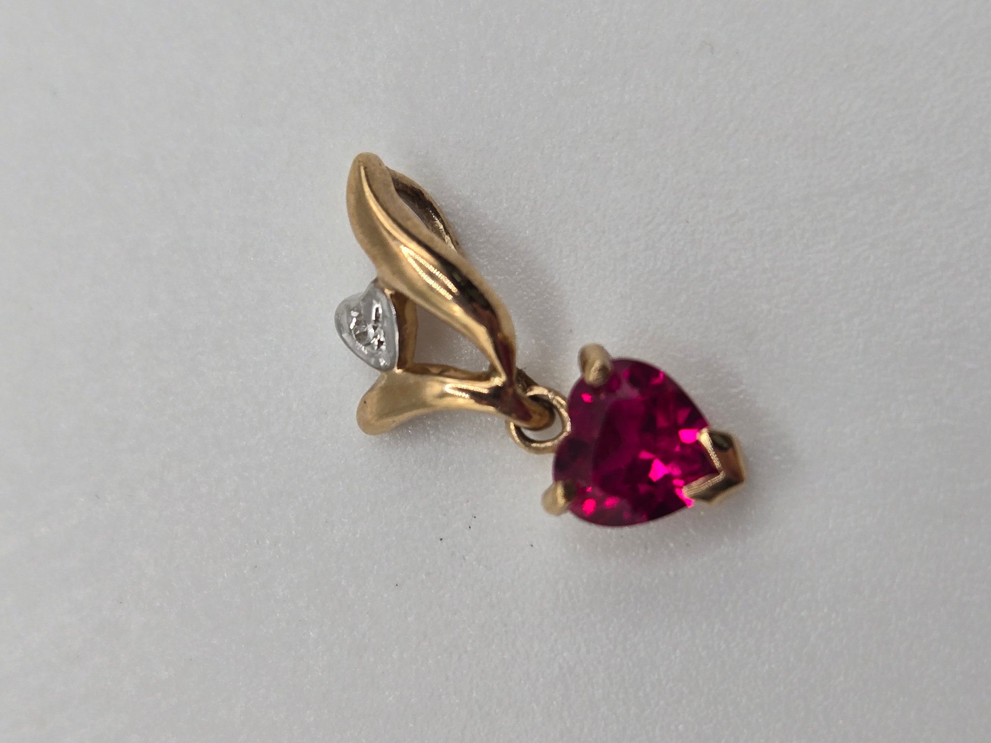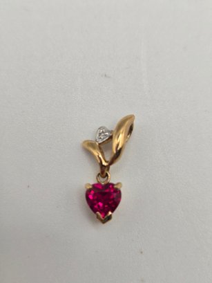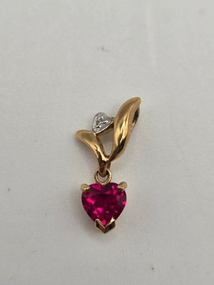 10K gold and Diamond Heart Pendant with Ruby