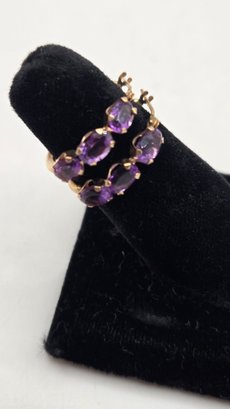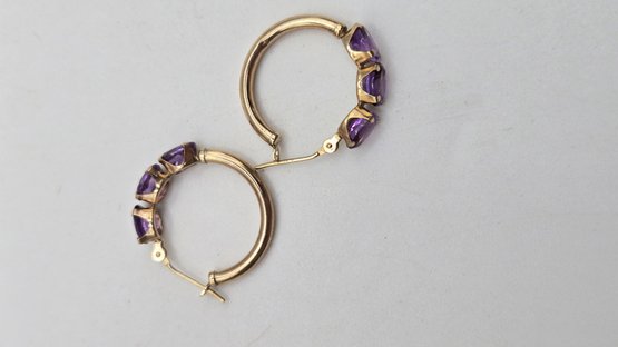 10K yellow gold and amethyst Hoop earrings