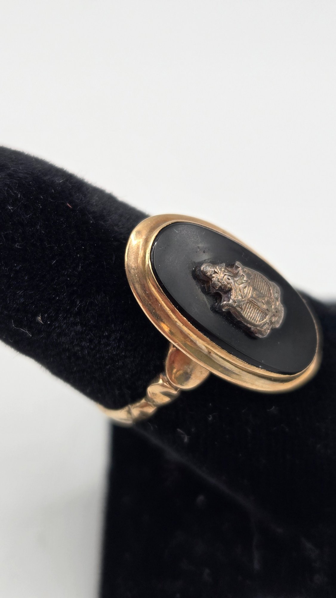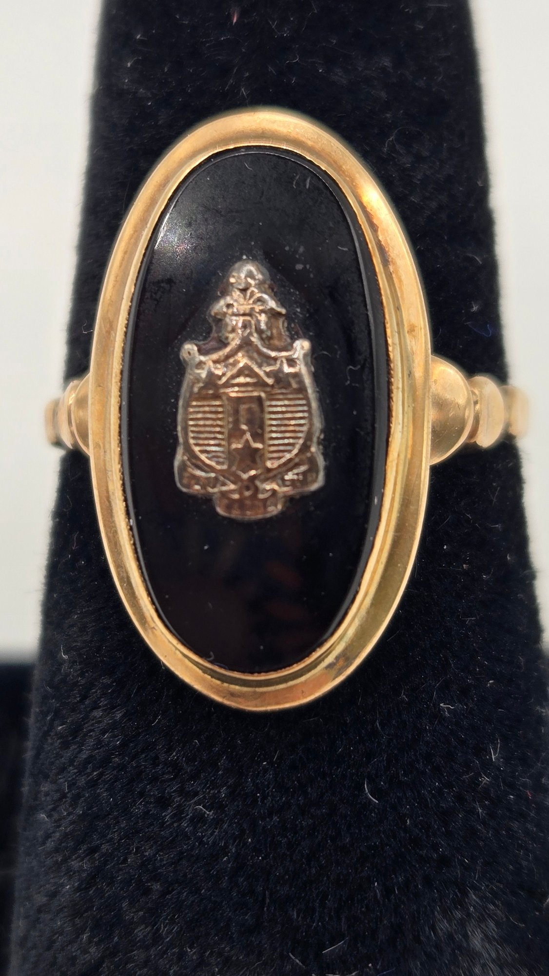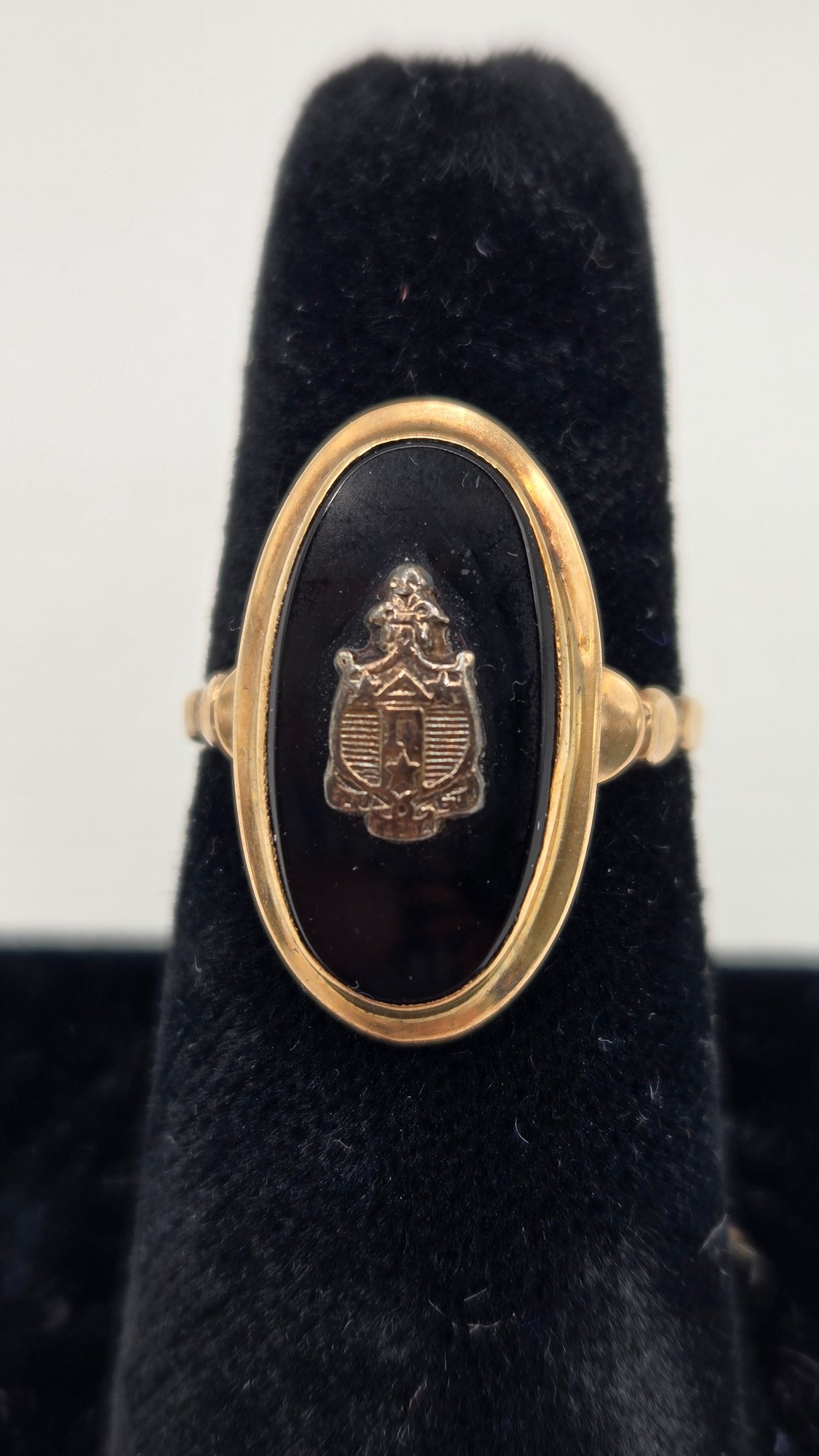 BDA Budlong, Docherty & Armstrong 10K yellow Gold & Black Onyx Crest ring