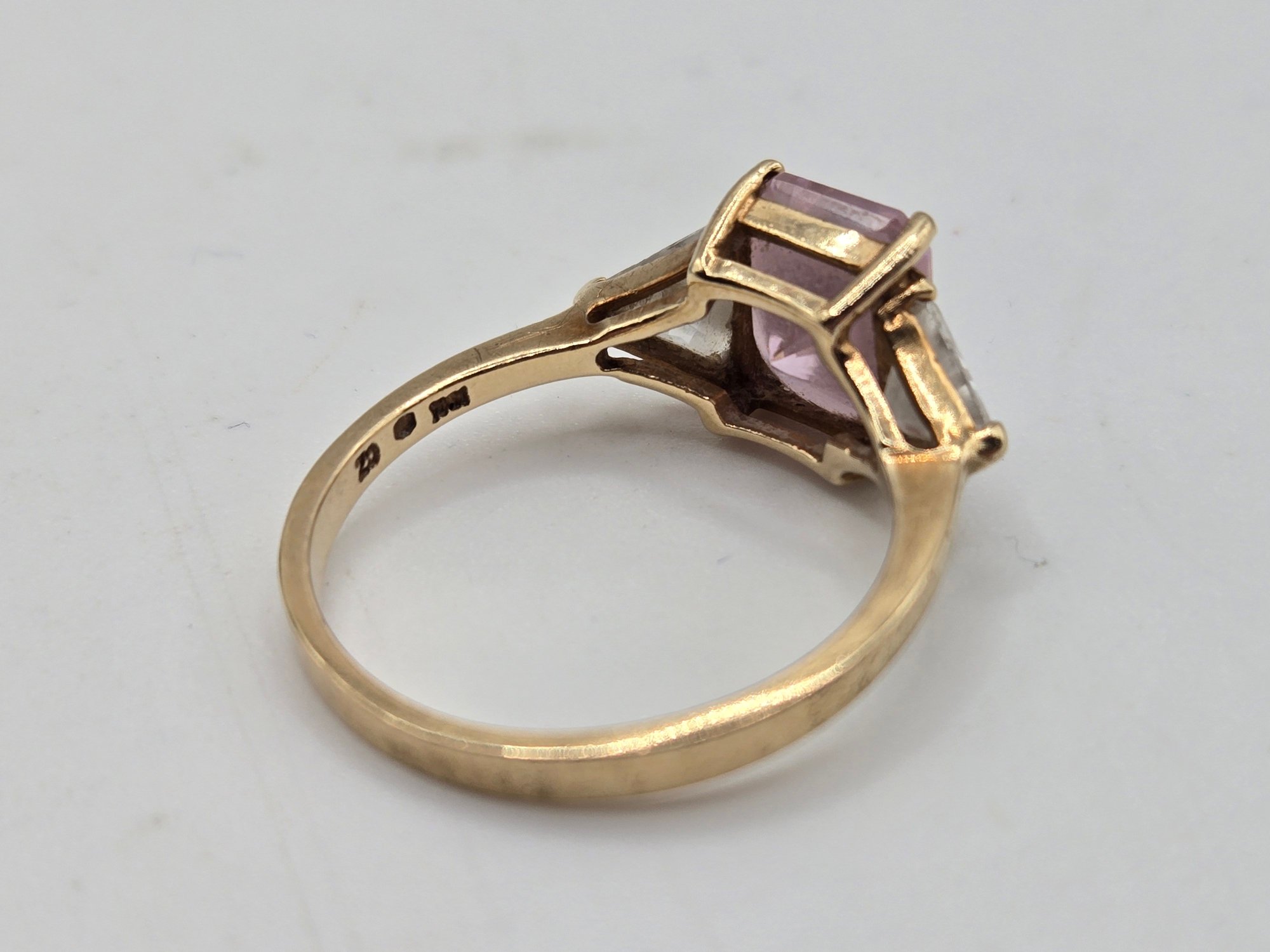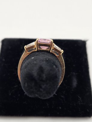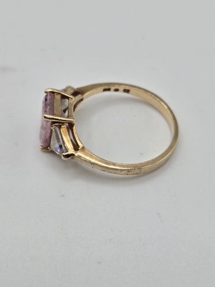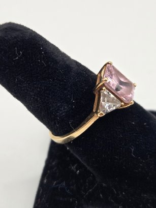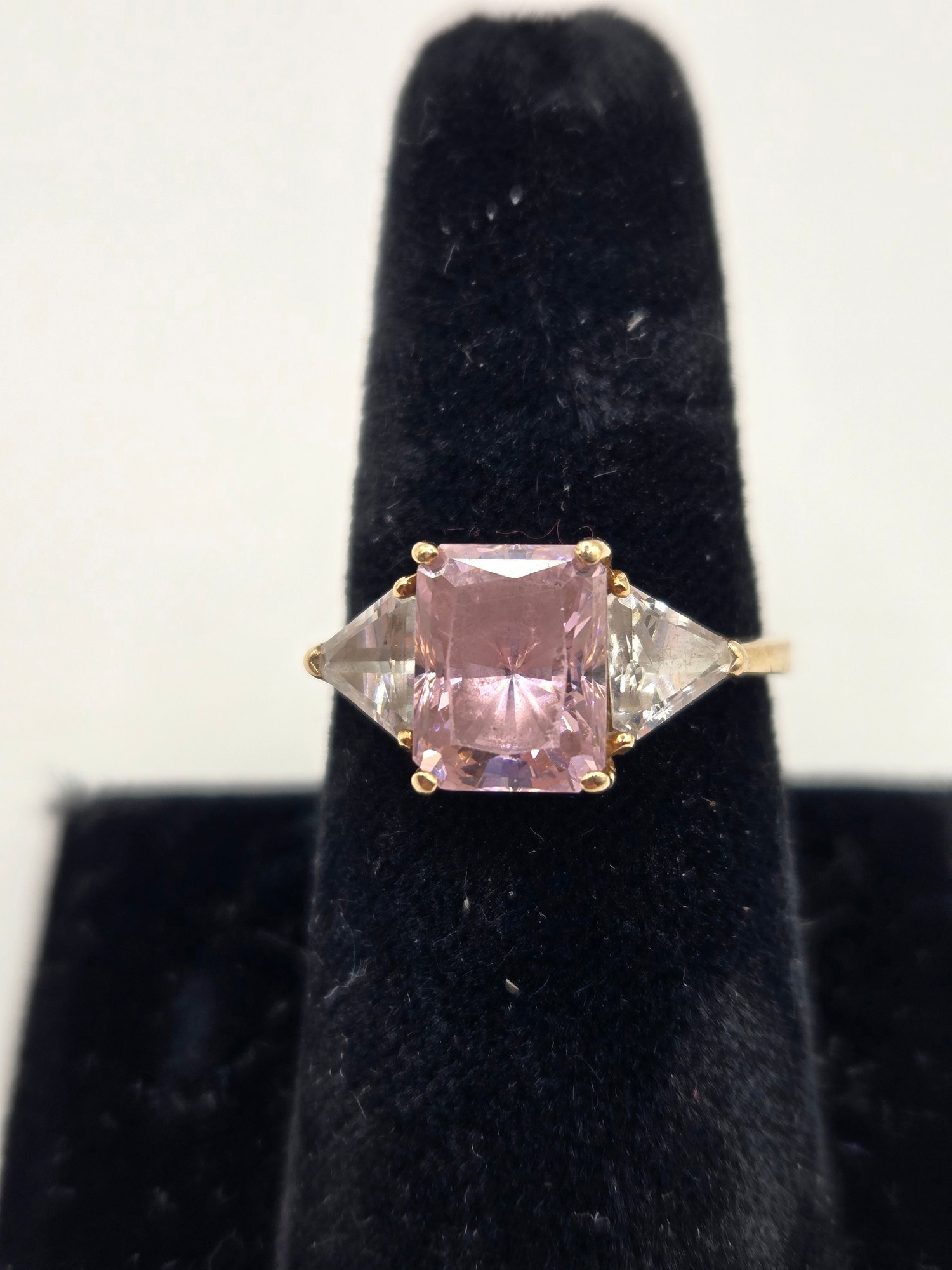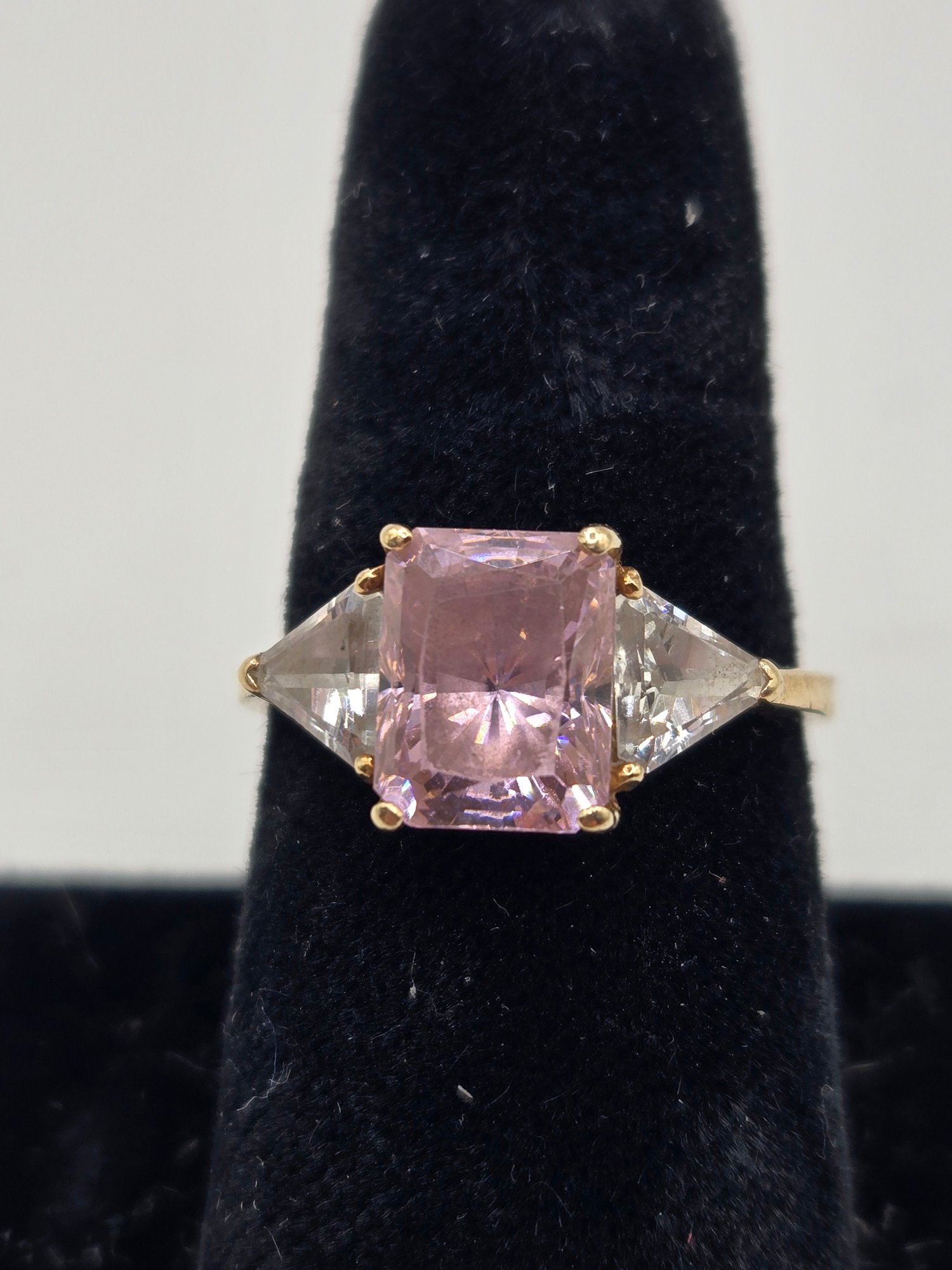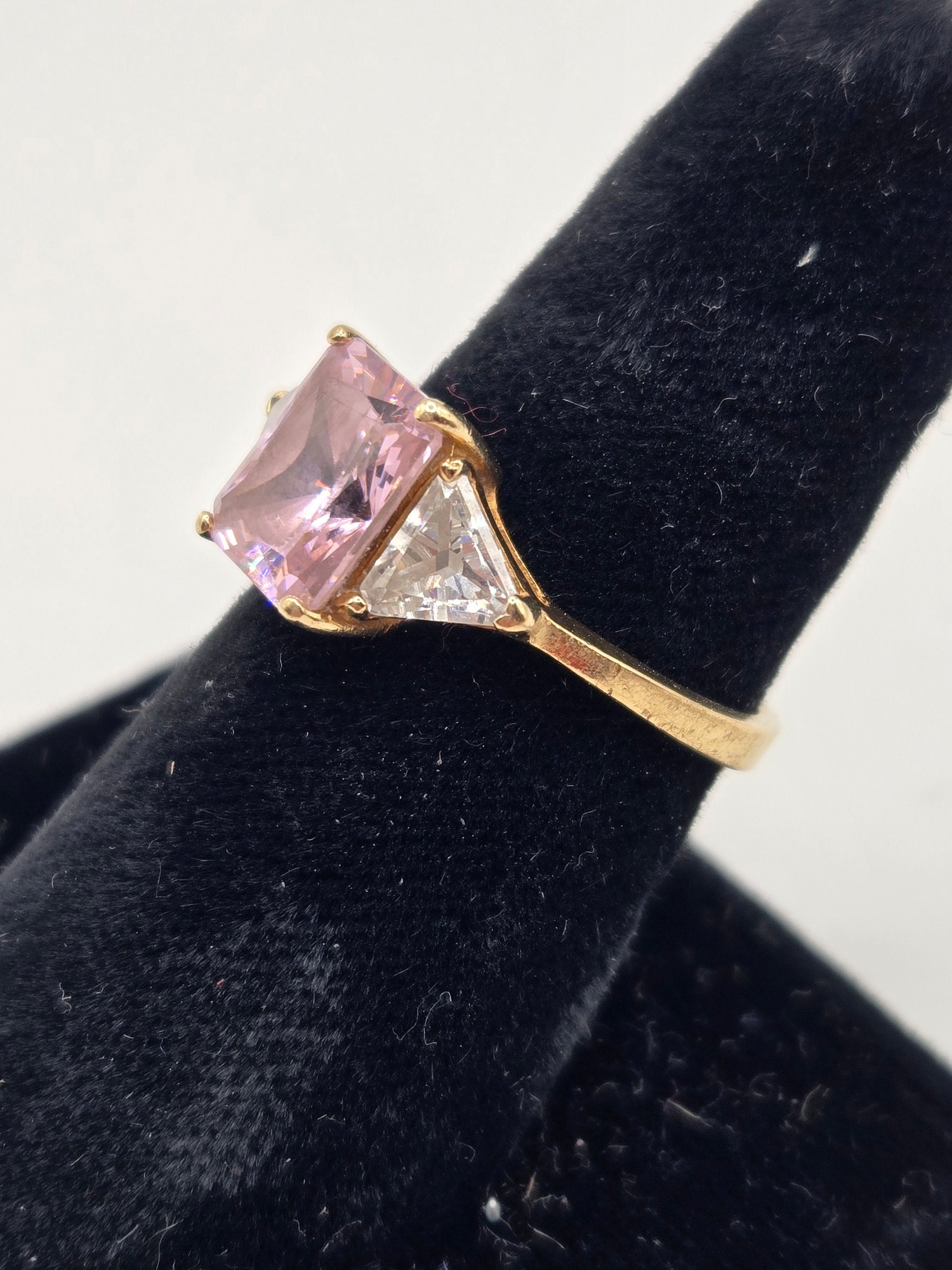 10K yellow Gold Pink Ice & Trillion Cut Cubic Zirconia Ring