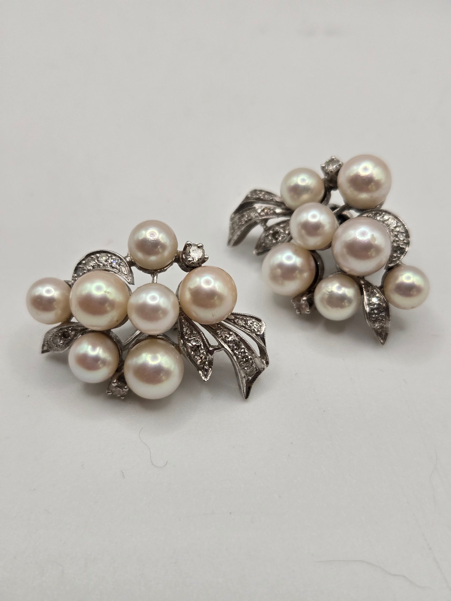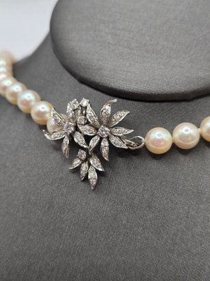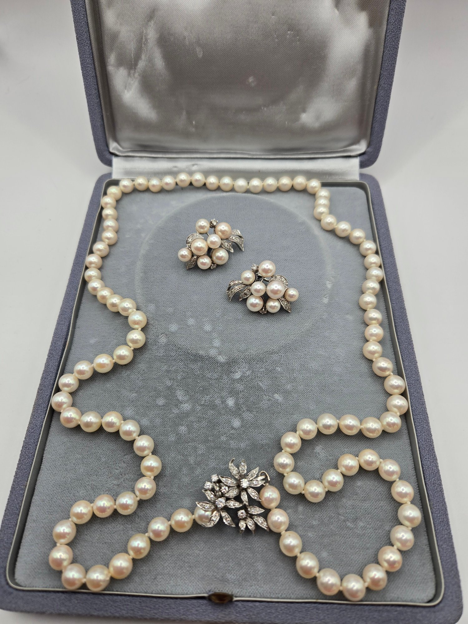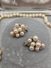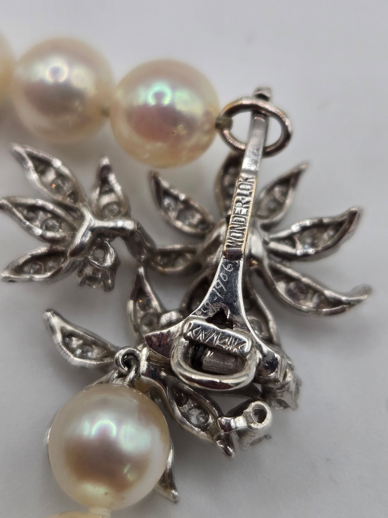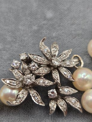 14K white gold, diamond and pearl necklace and earring set.
