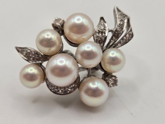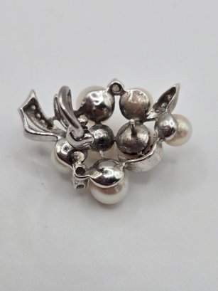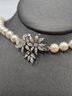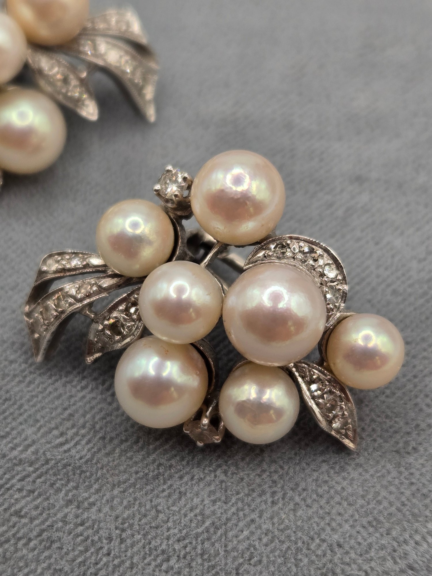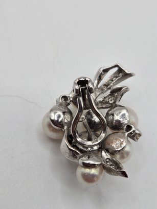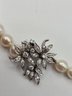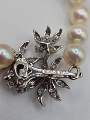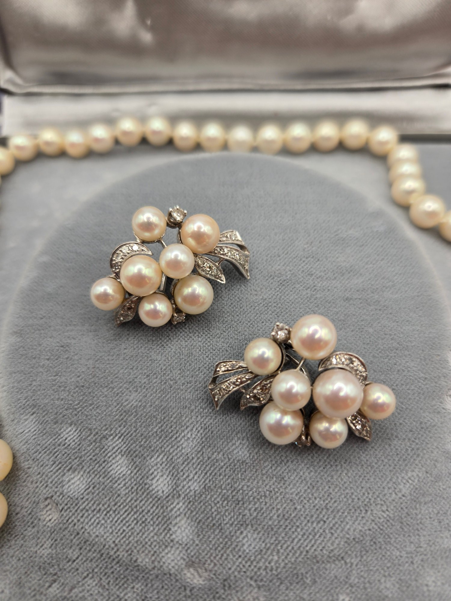 14K white gold, diamond and pearl necklace and earring set.