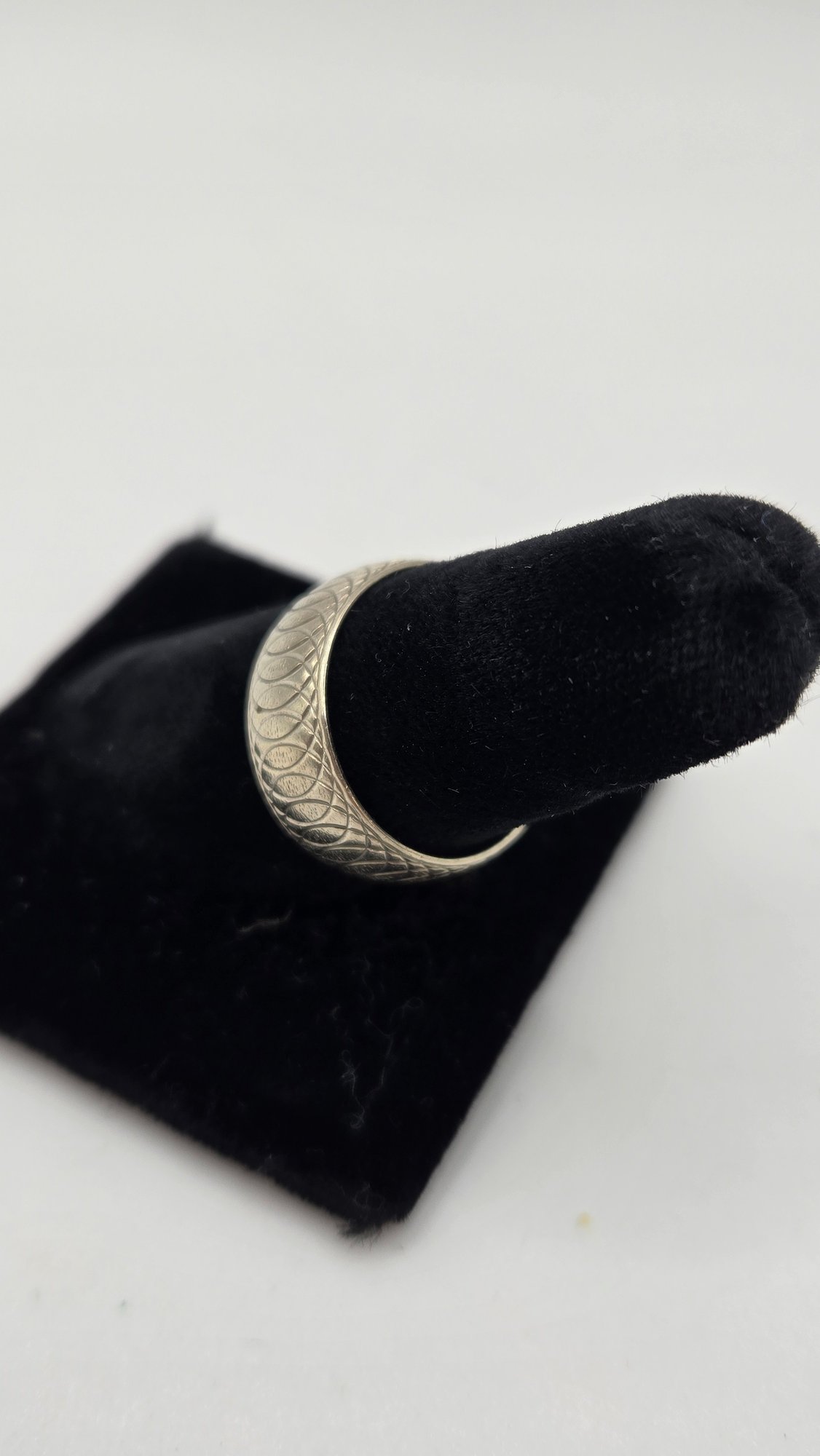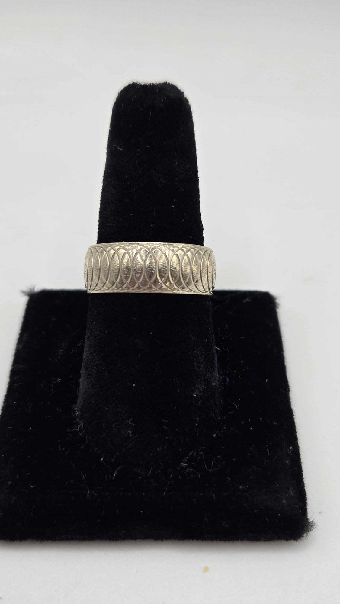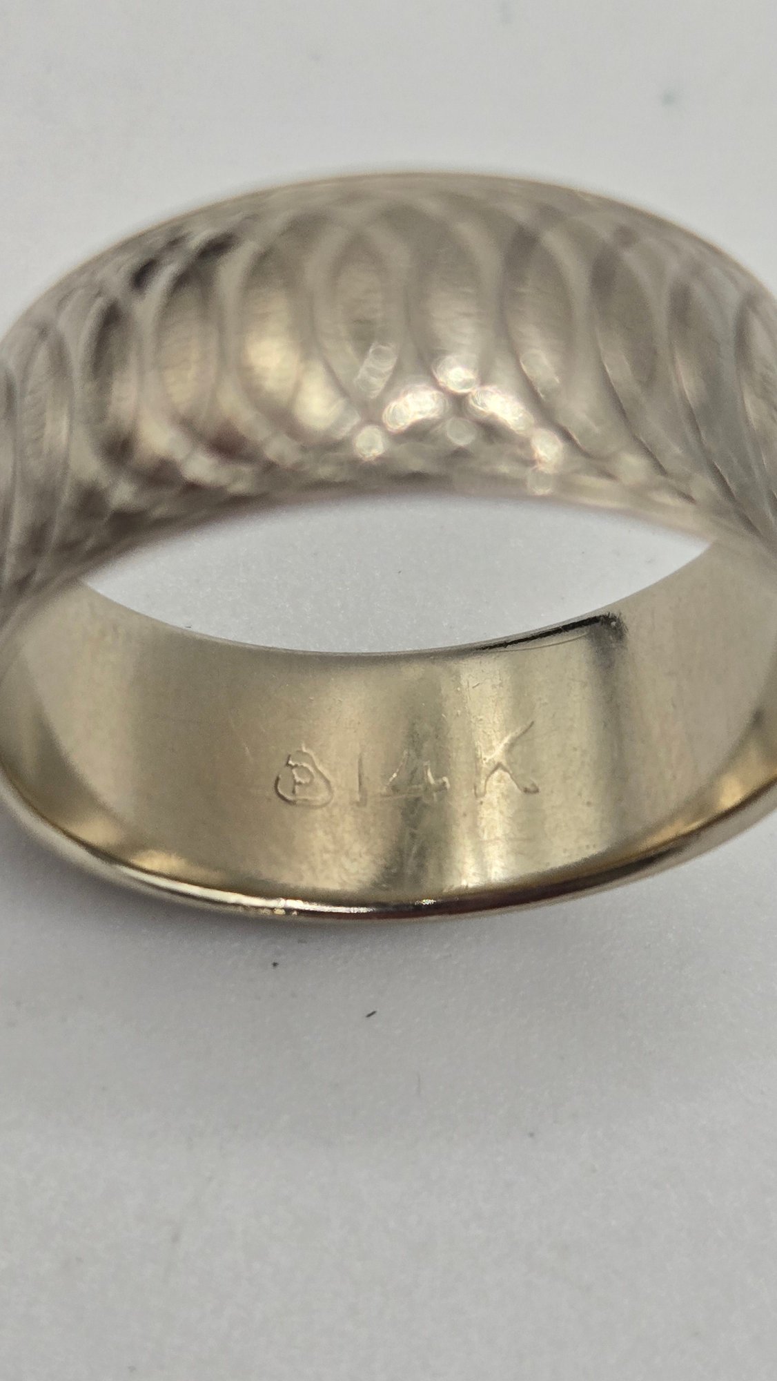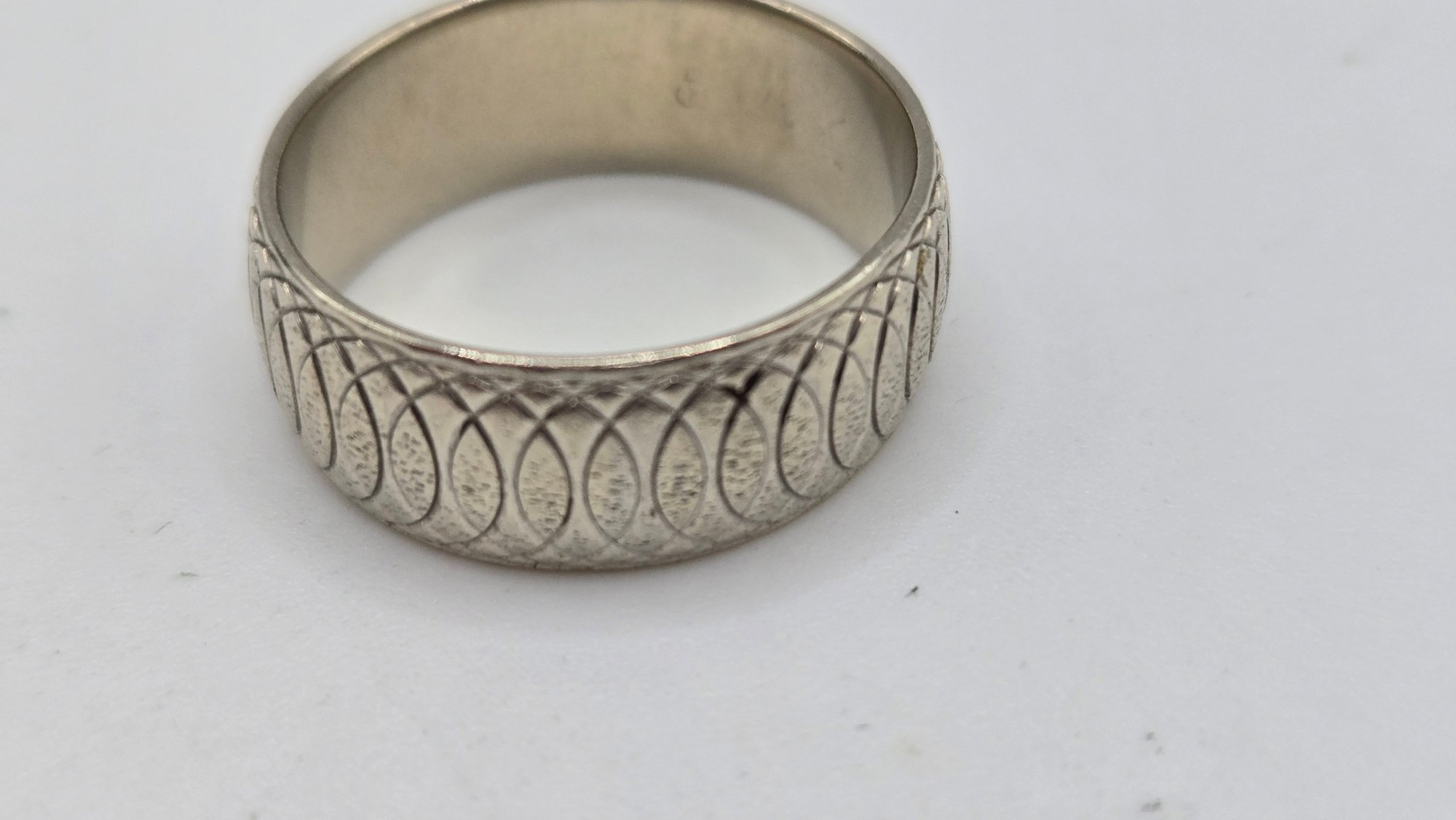 14K white gold wedding band. Contemporary infinity loops