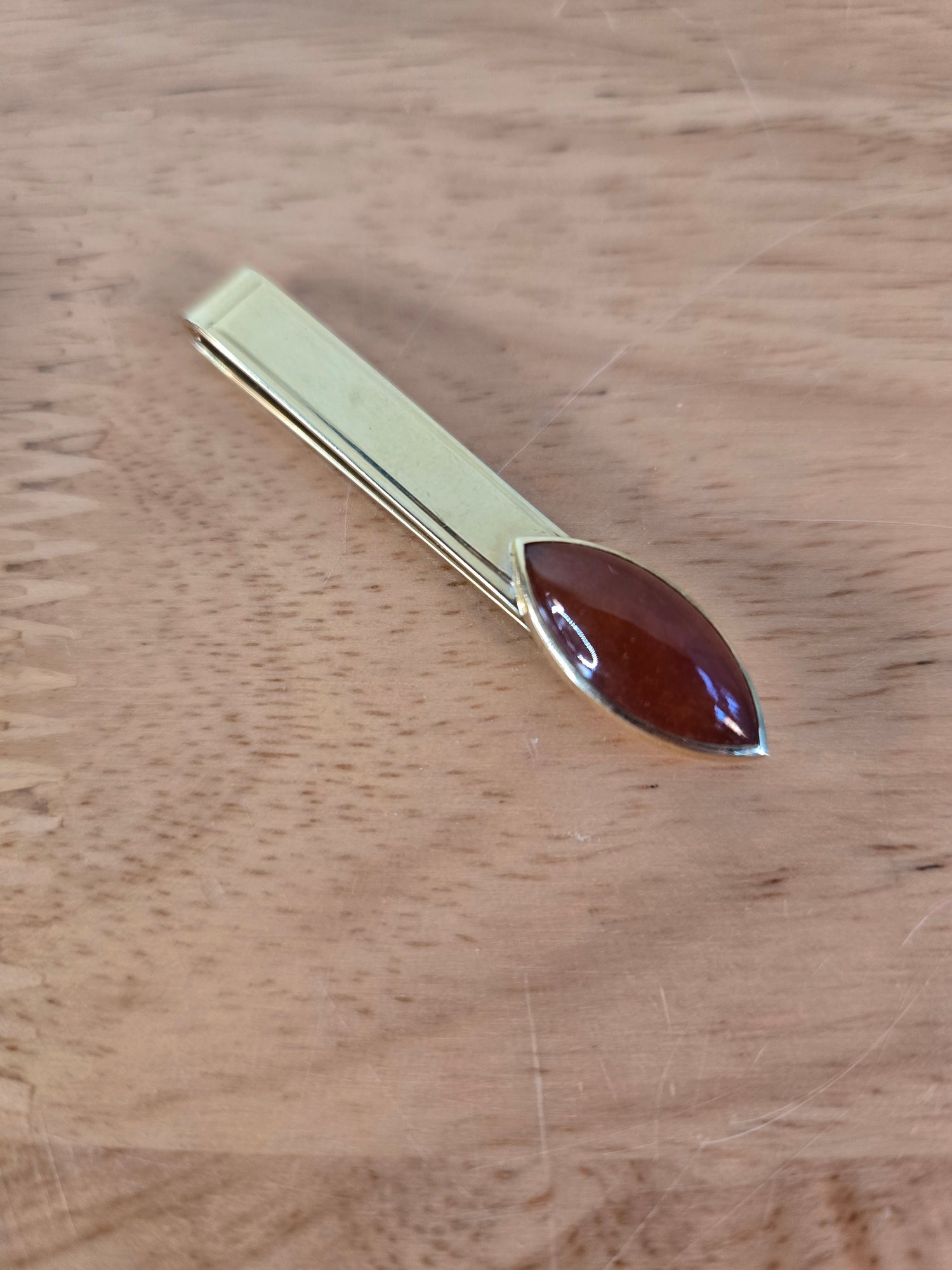 14K yellow gold and carnelian tie bar