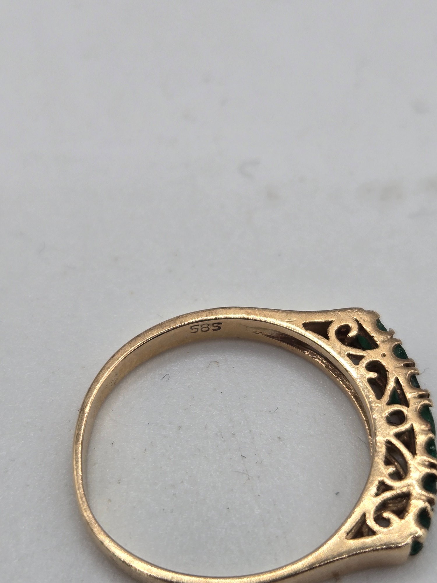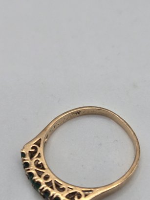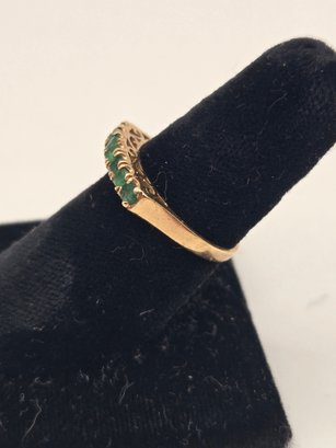 14K Yellow Gold And Emerald Chip Stacker Ring