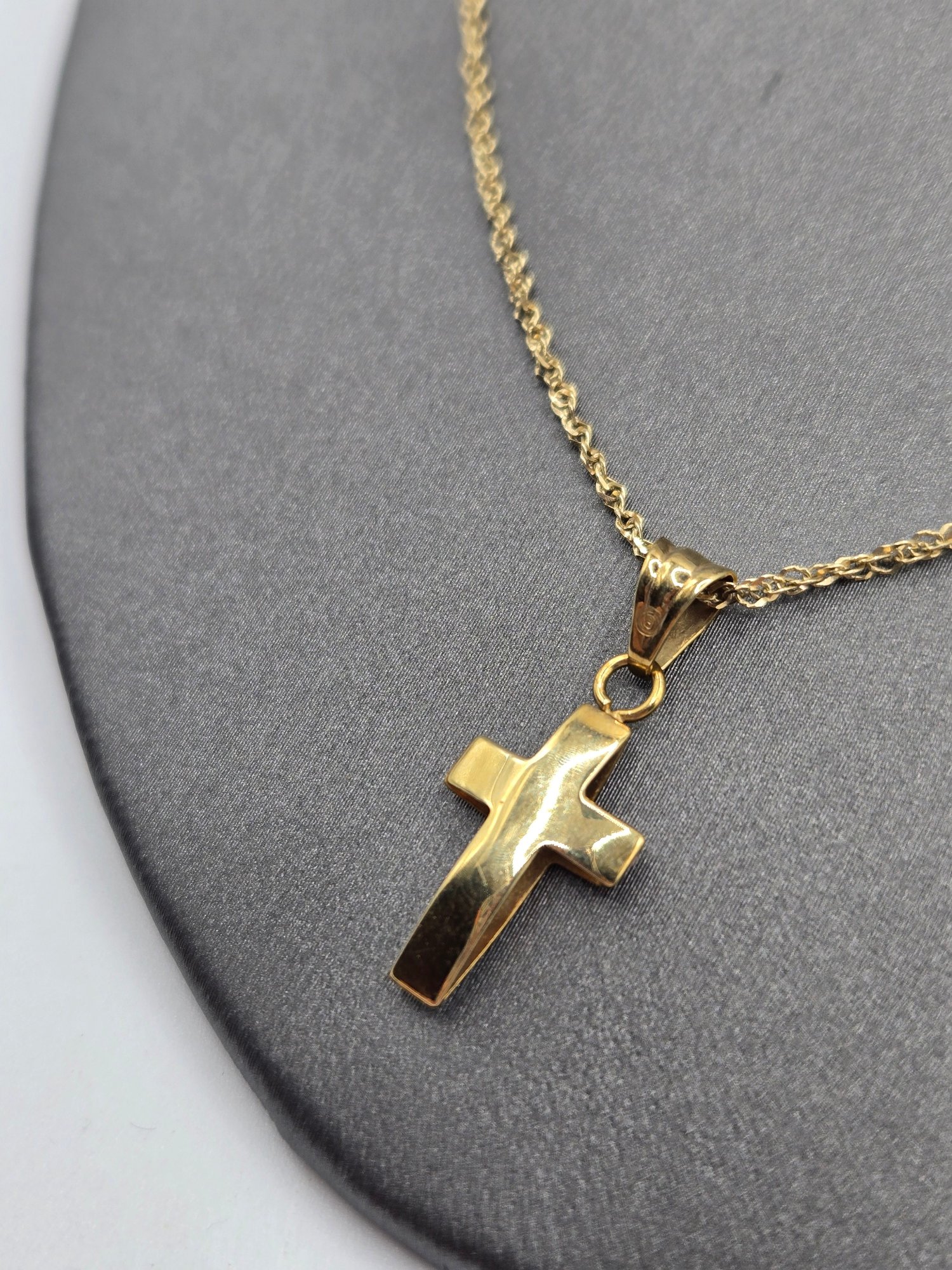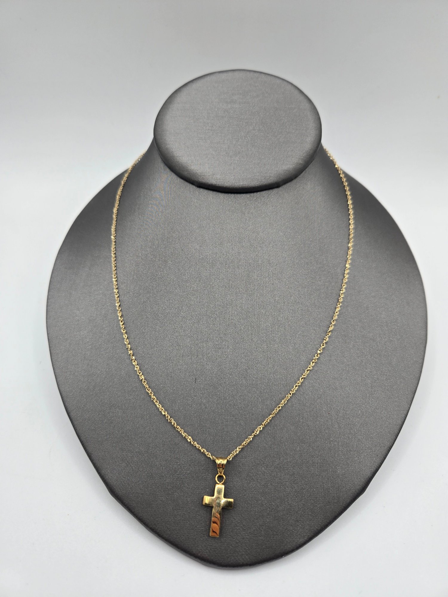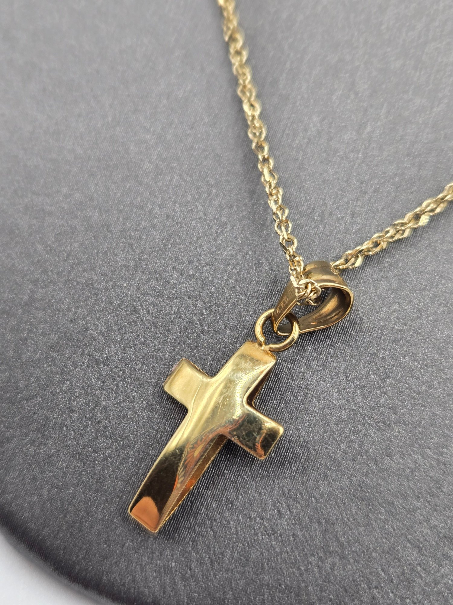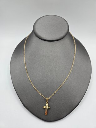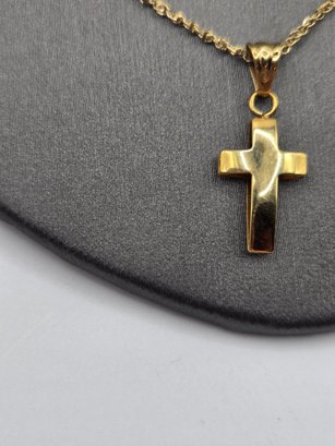 14K yellow gold cross on simple 14K yellow gold chain