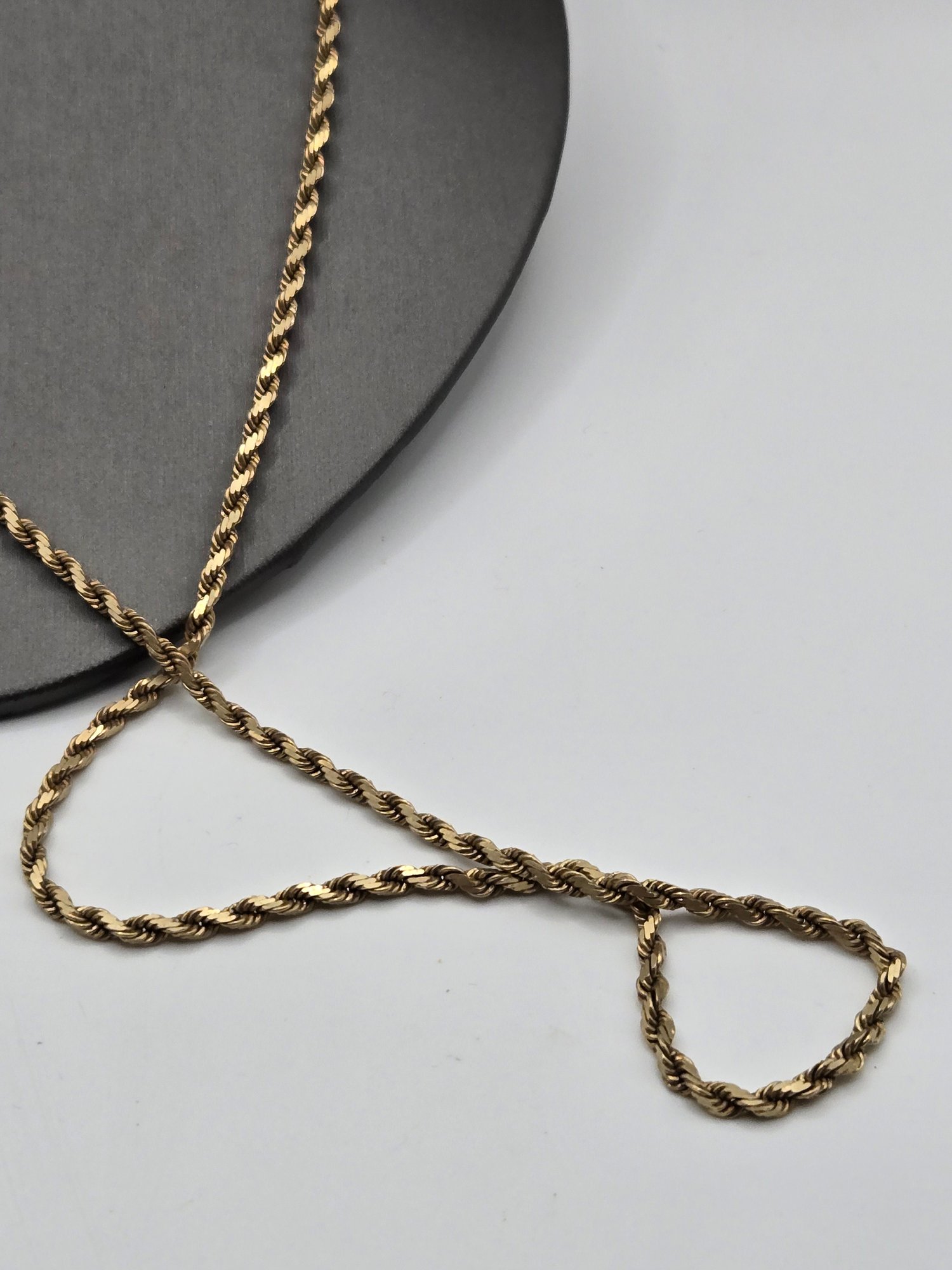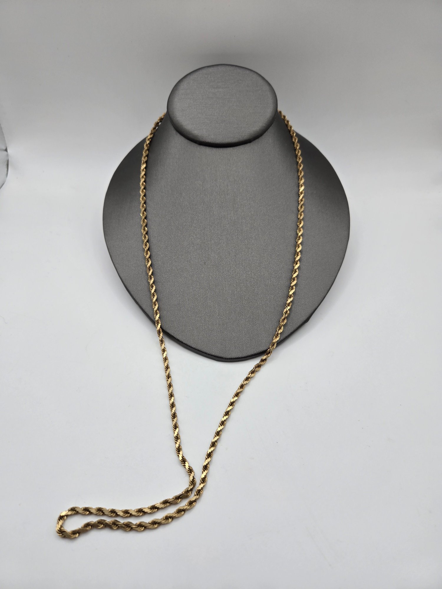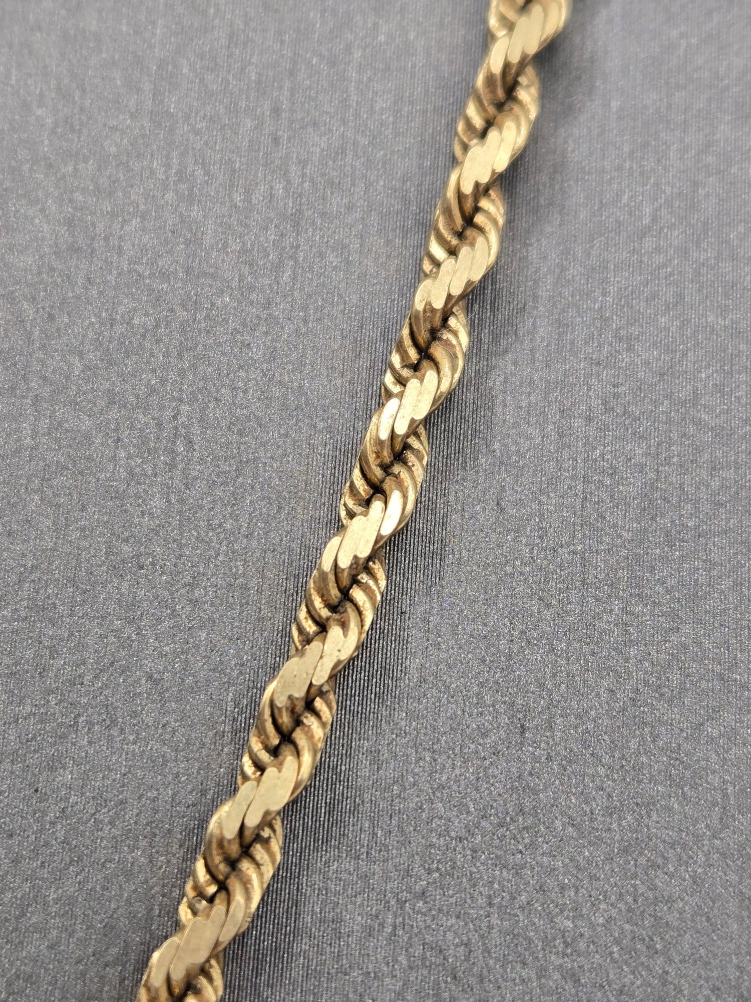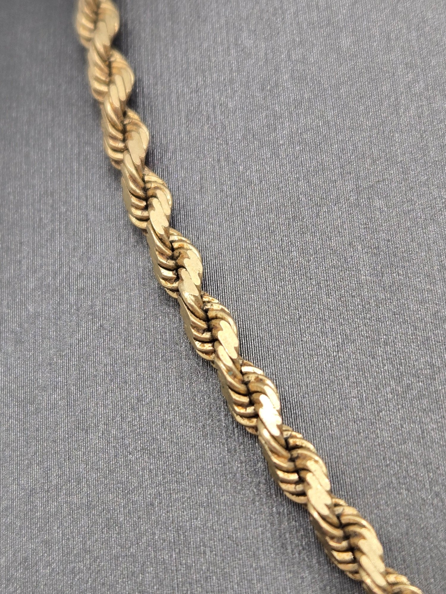 14K yellow gold long diamond cut rope chain