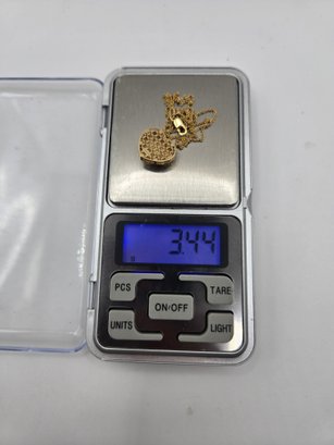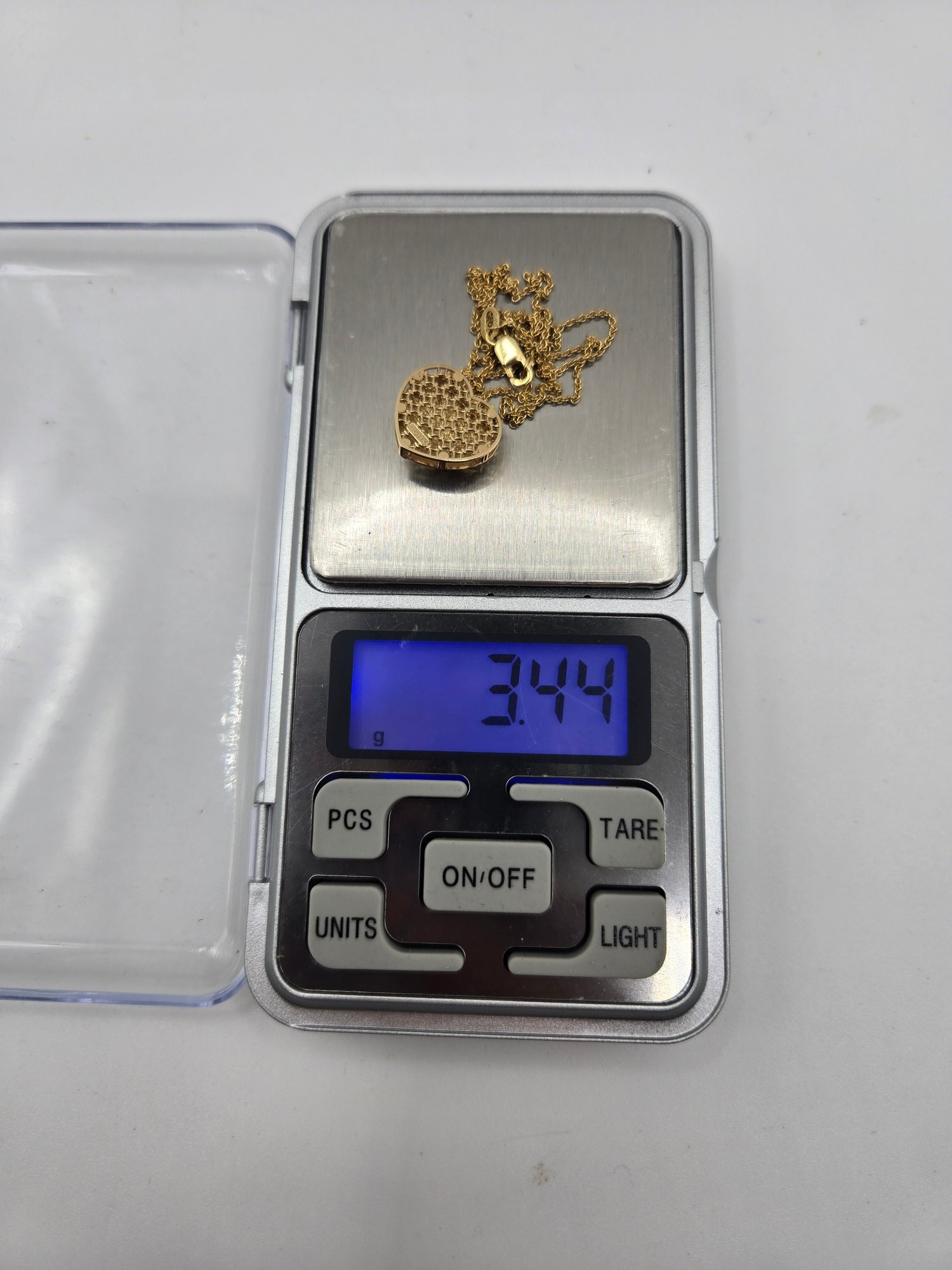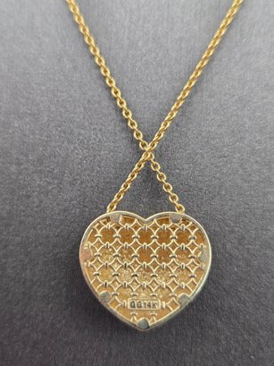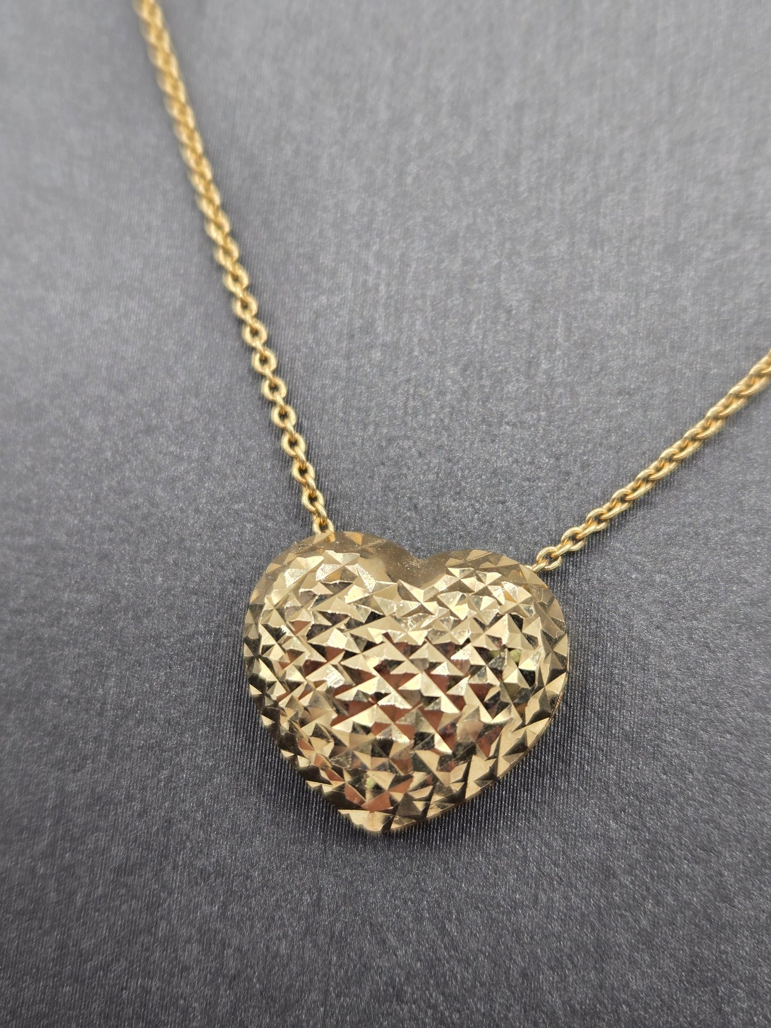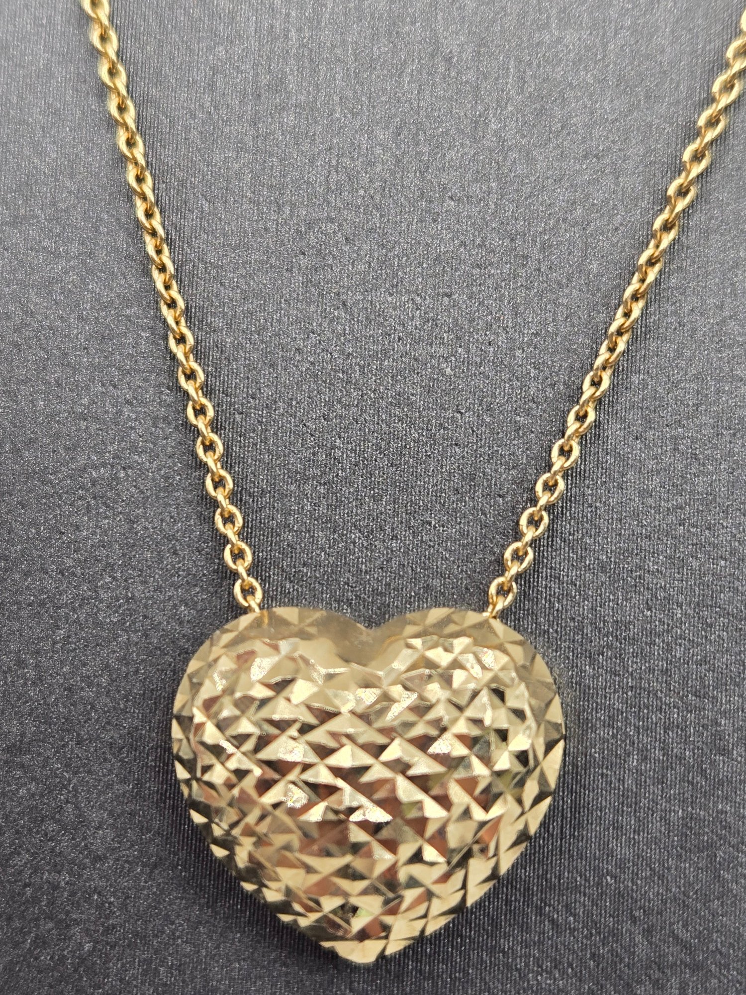 14K yellow Gold Diamond Texture Heart Pendant Necklace