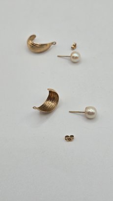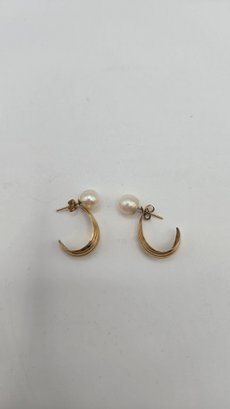 14K yellow gold pearl stud earrings