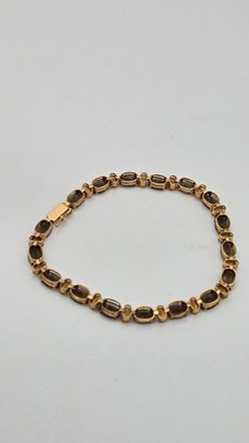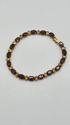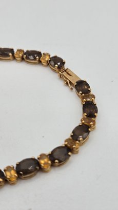 14K Yellow Gold, Smokey Quartz and Citrine Tennis Bracelet