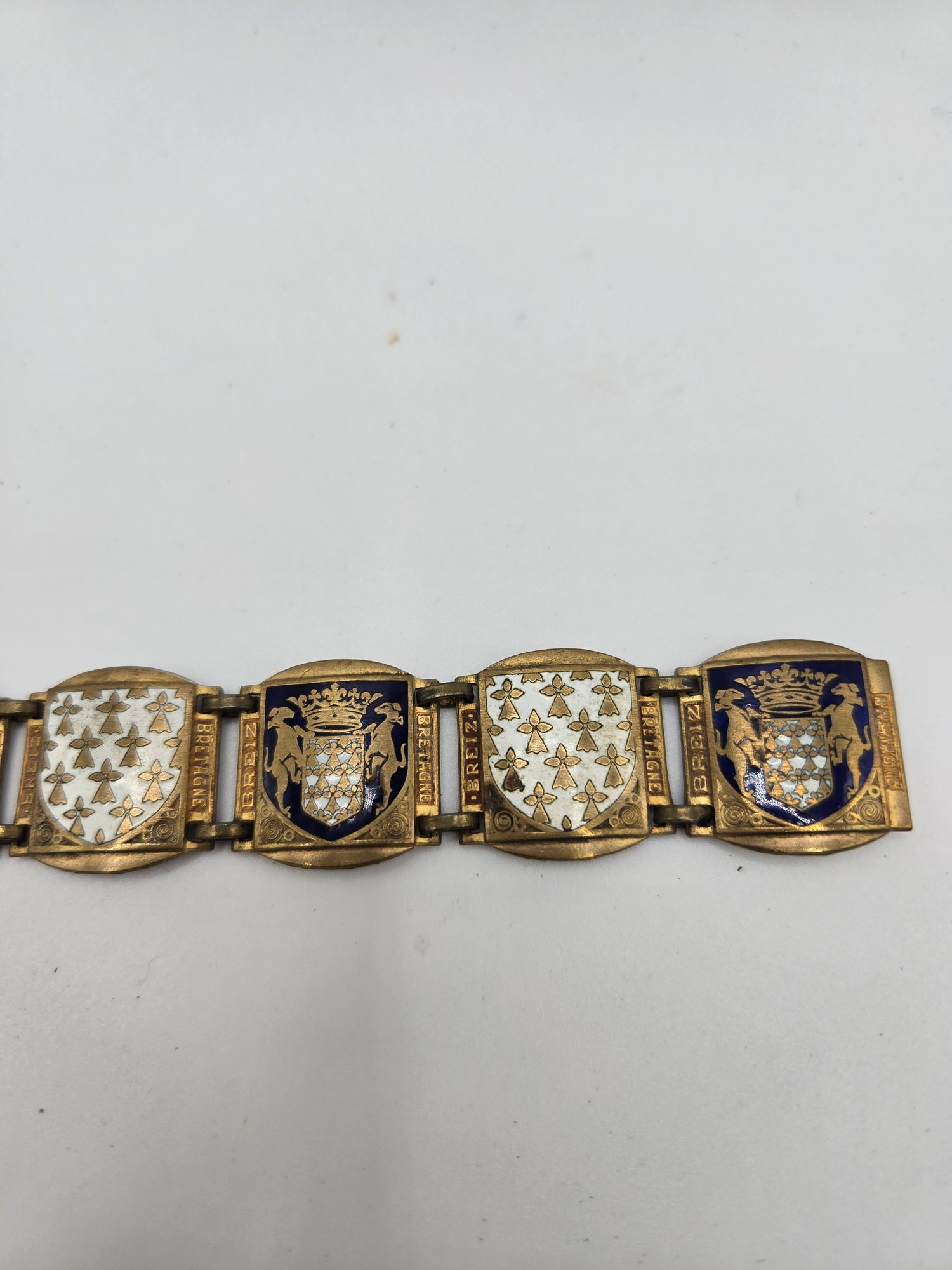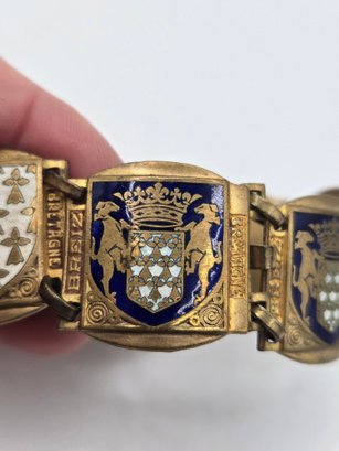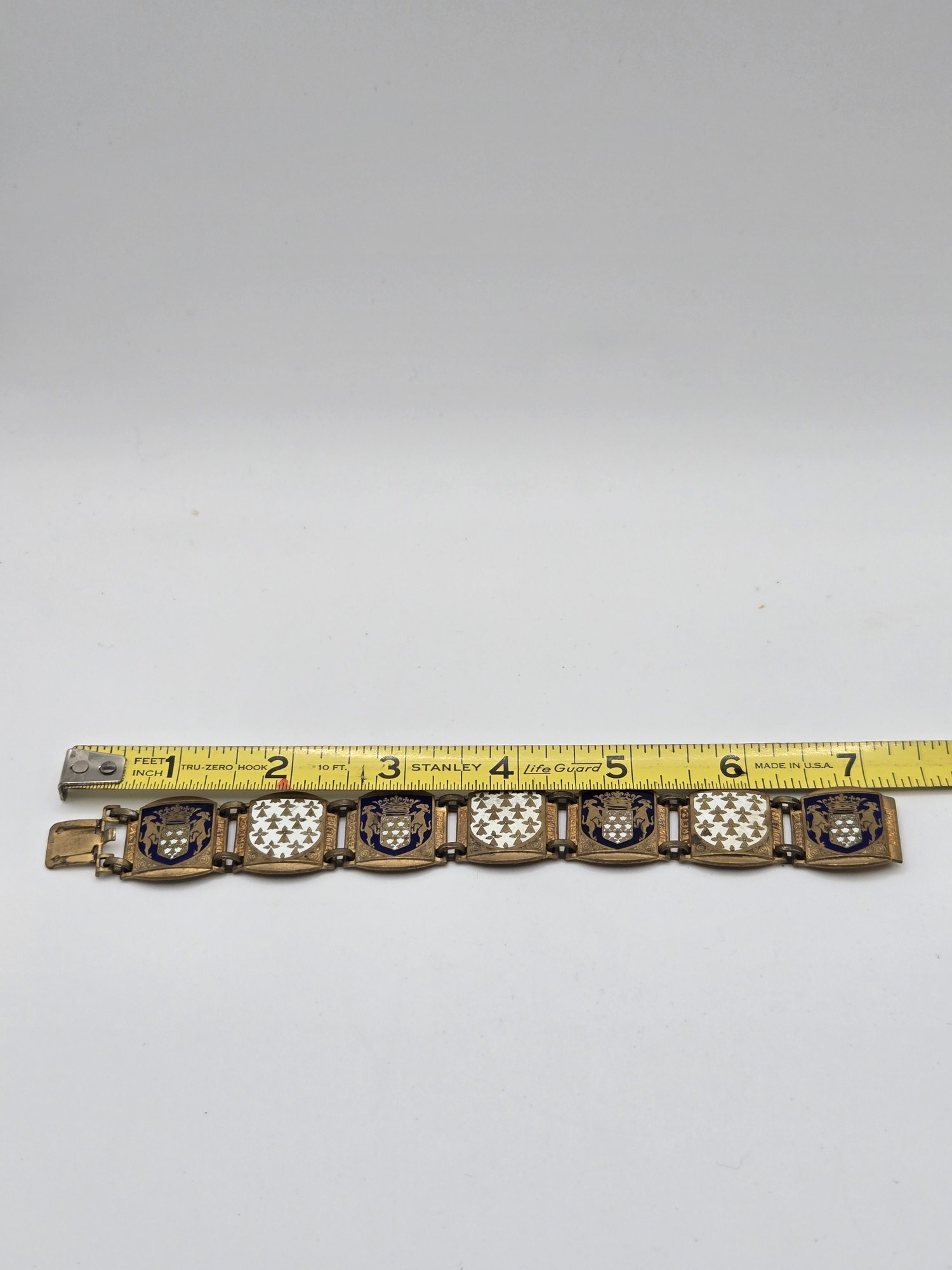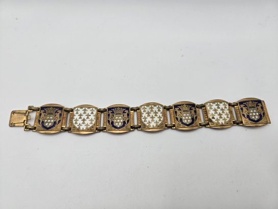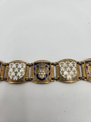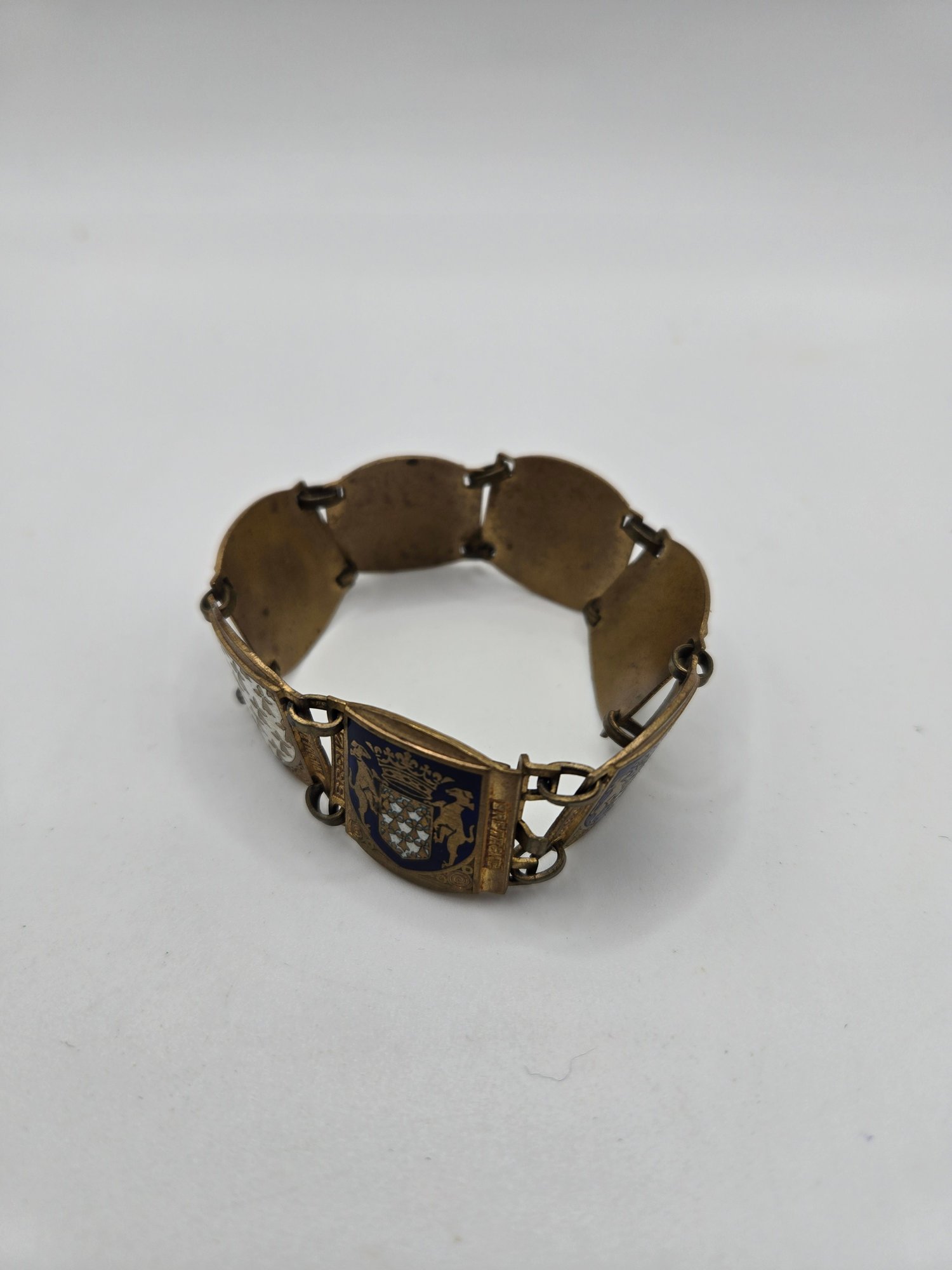 7 Enamel panel bracelet with Coat of Arms. Plated brass or copper
