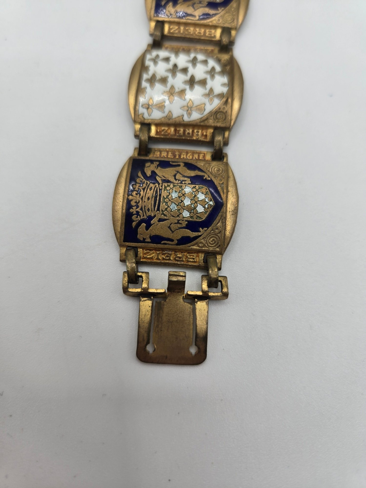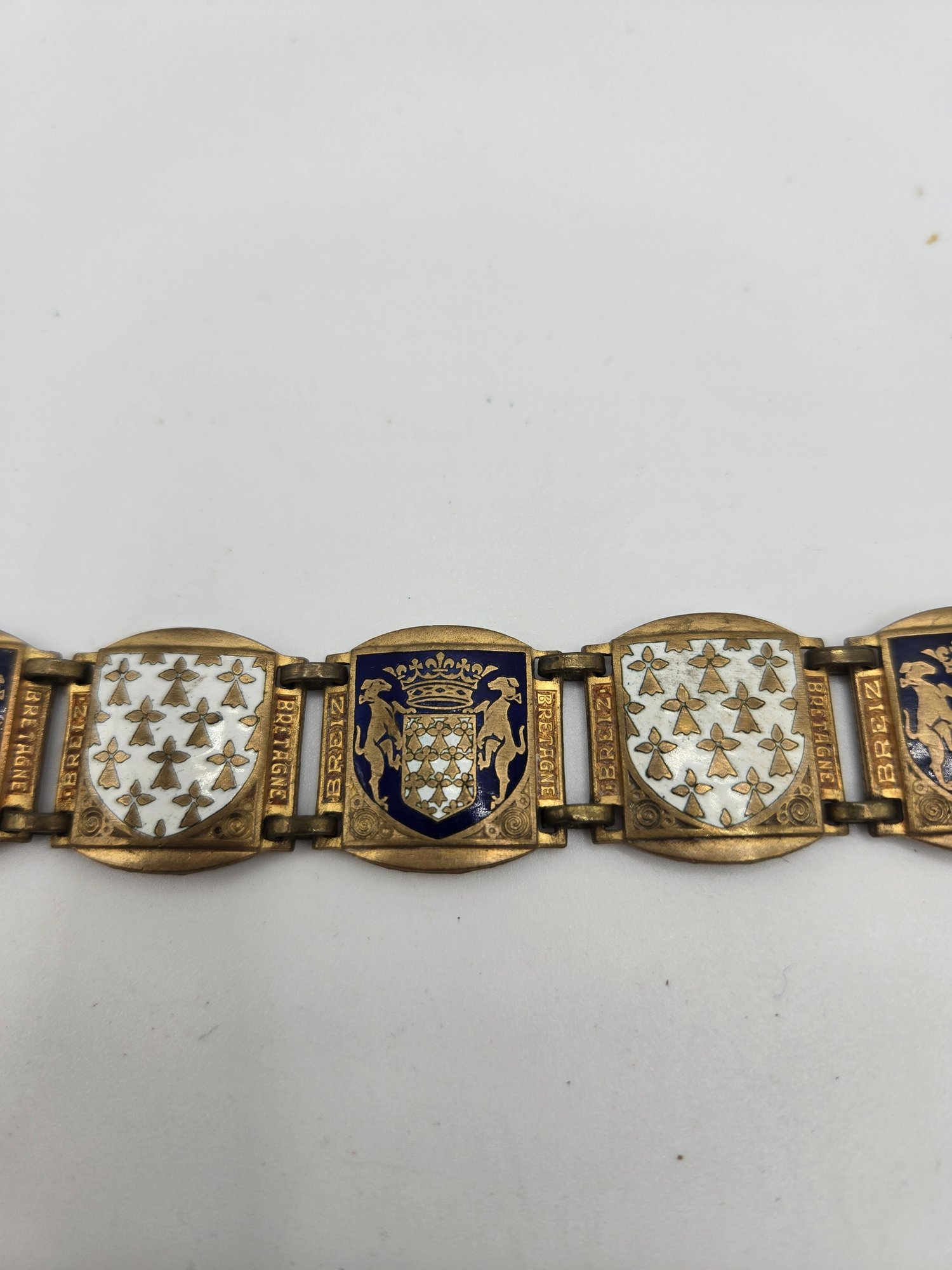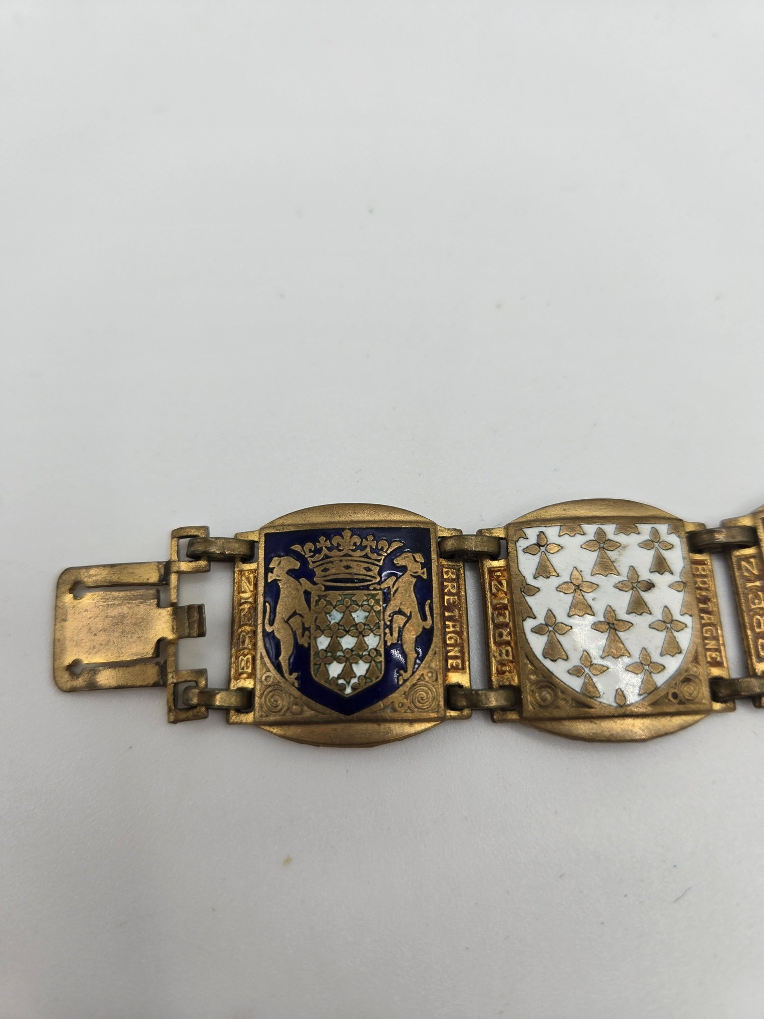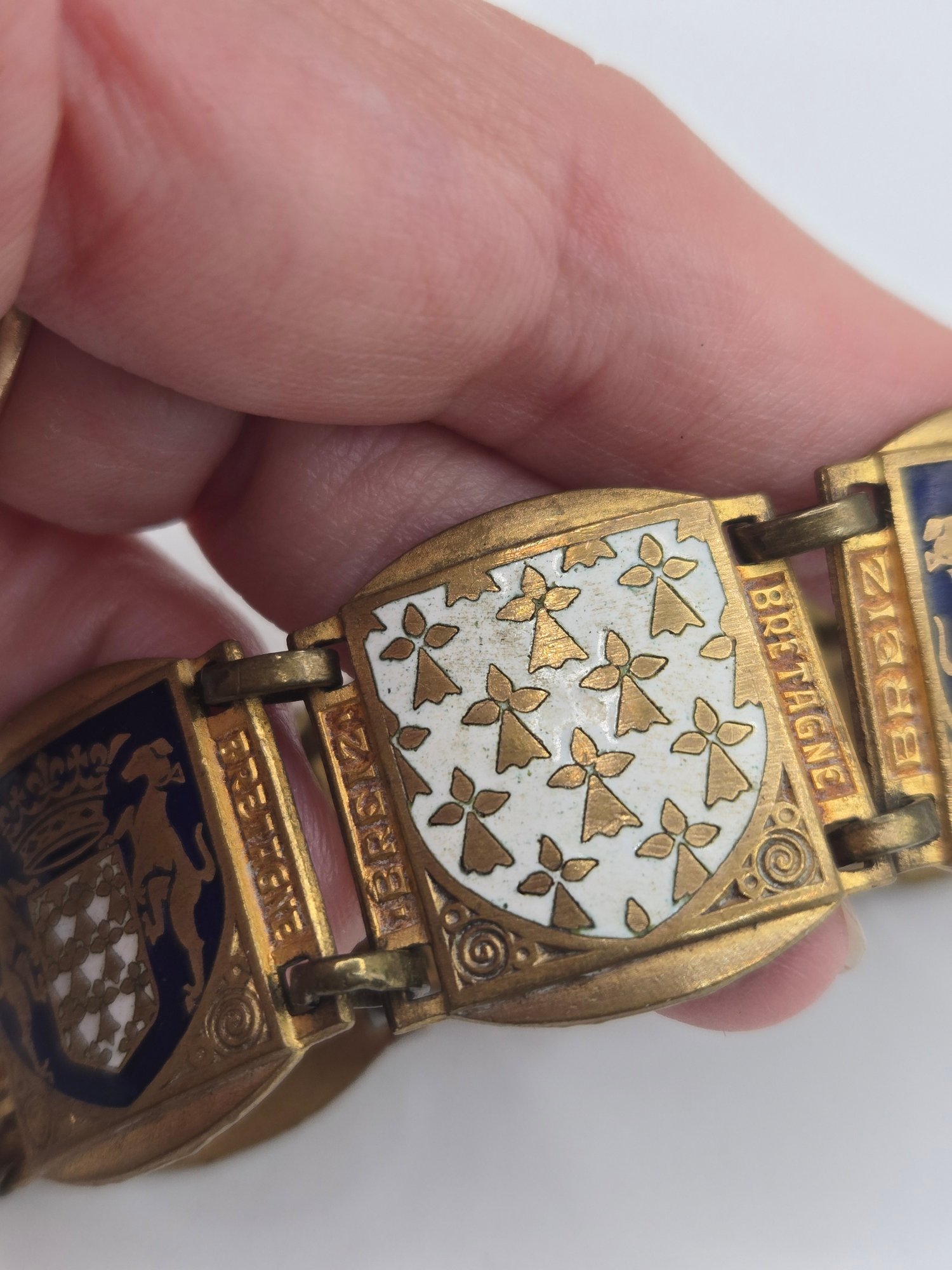 7 Enamel panel bracelet with Coat of Arms. Plated brass or copper