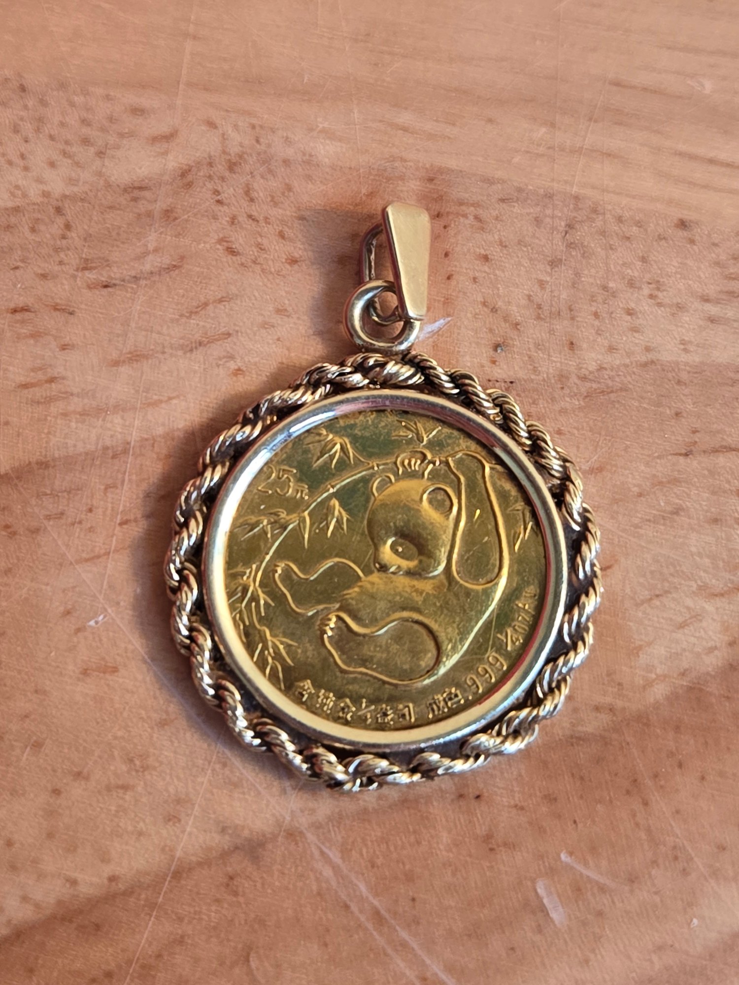 1985 Chinese 25 Yuan 1/4ozt 999 Gold Panda Pendant.