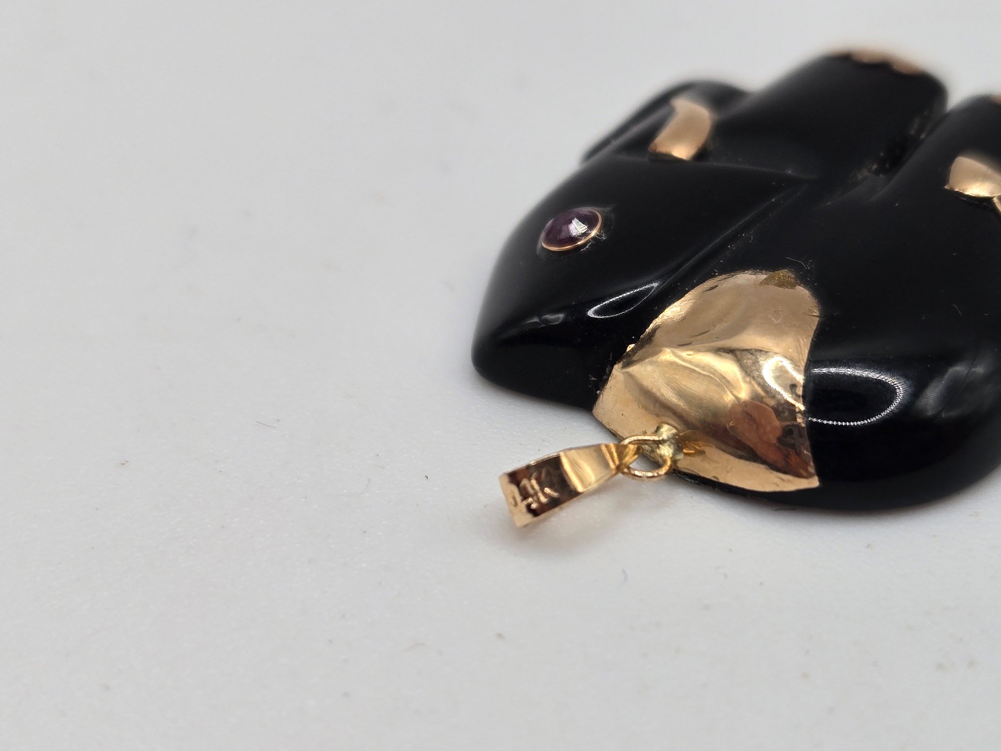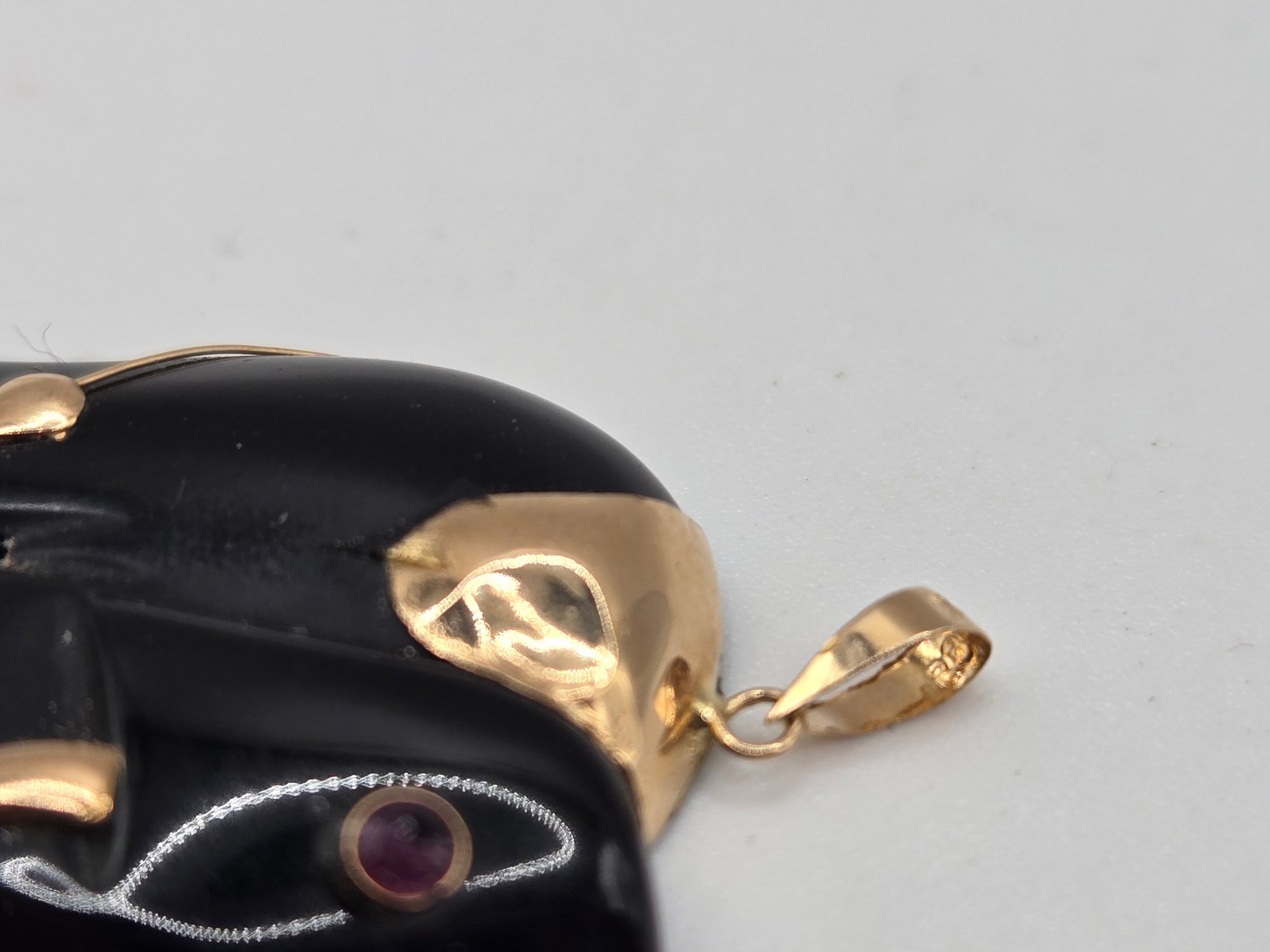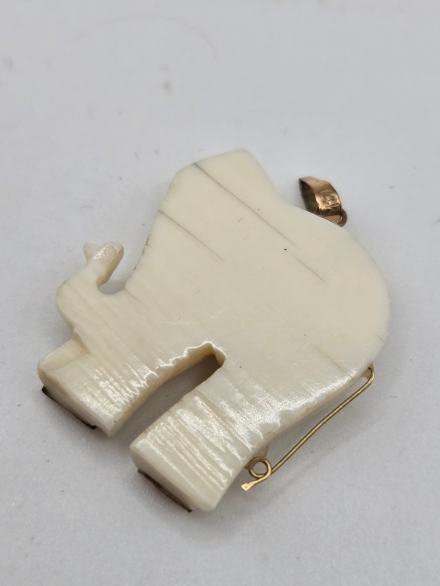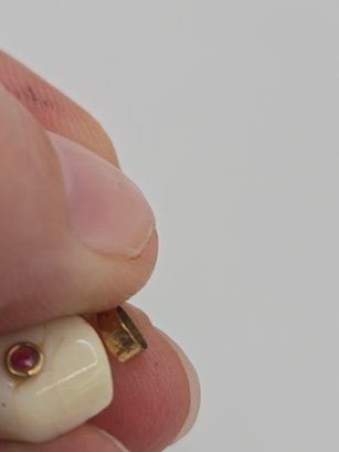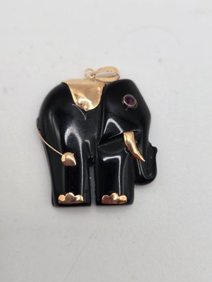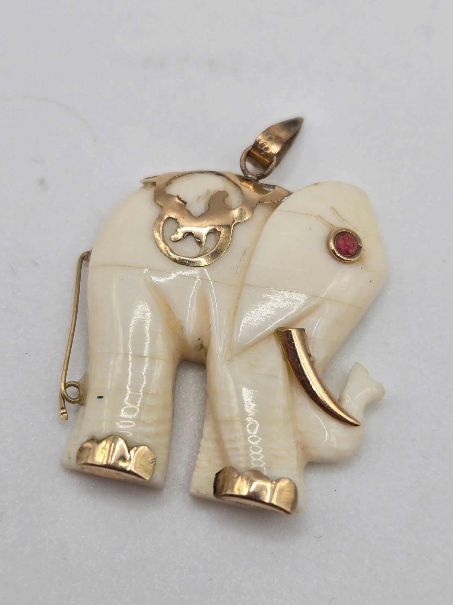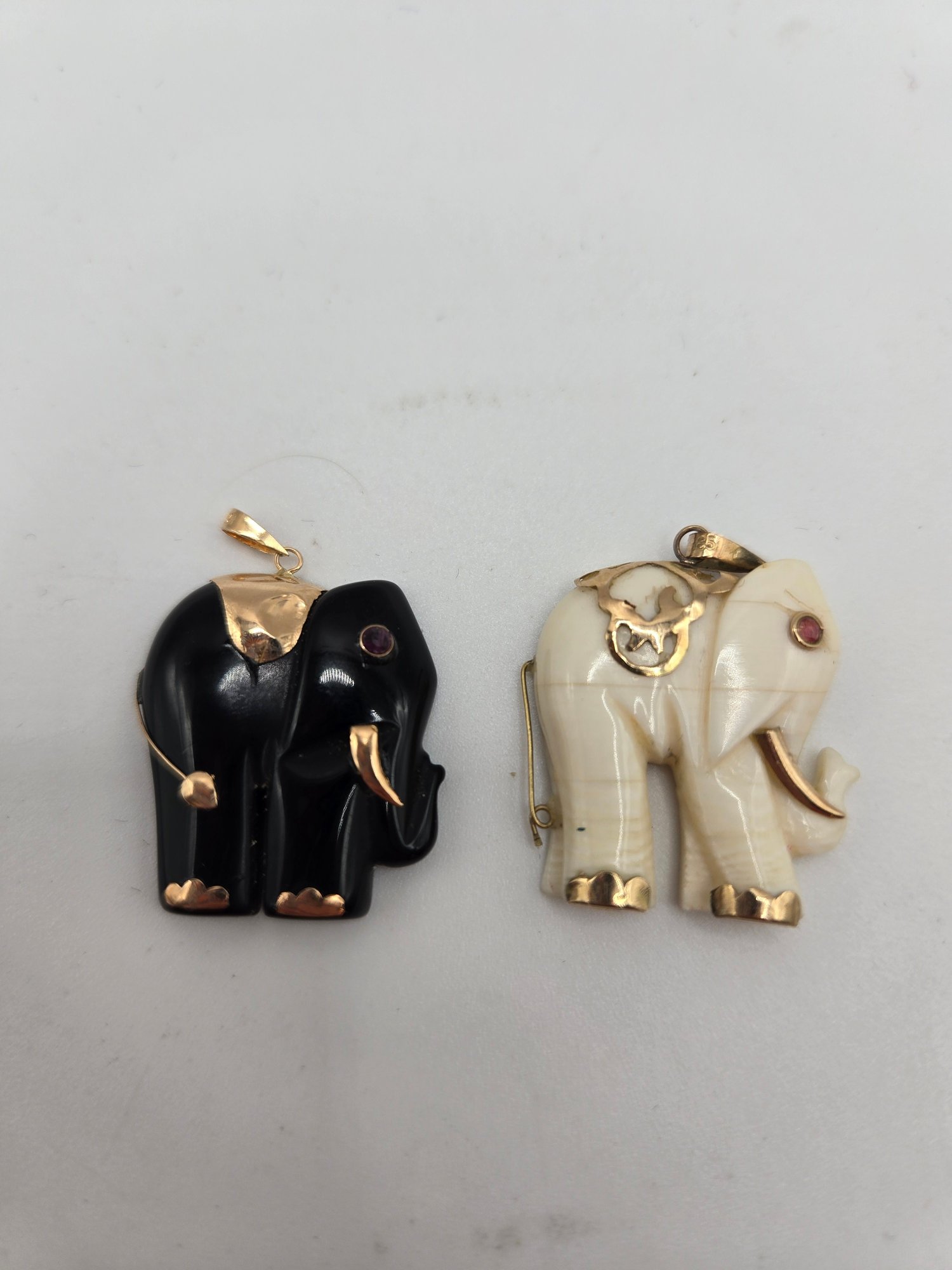 (2) bone pendants of elephants with ruby eyes.