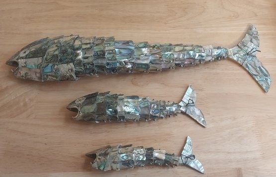 (3) Abalone Paua Shell Articulated Fish Decor/Bottle Openers