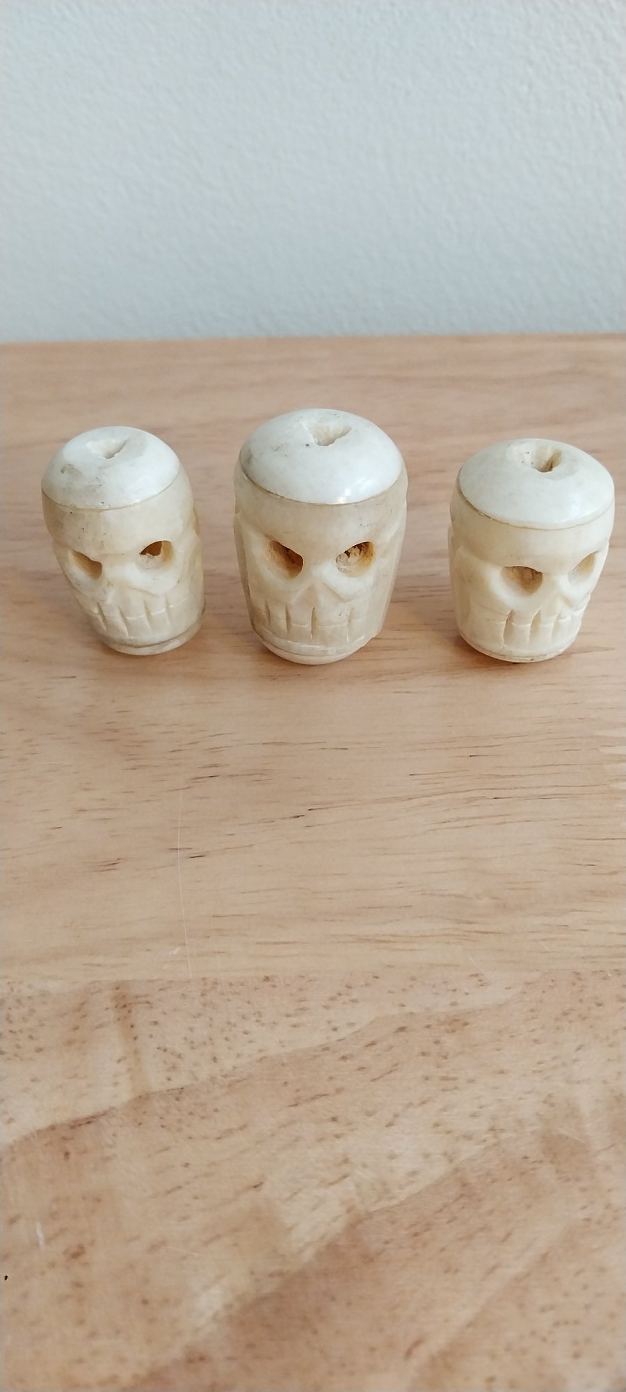 (3) Vintage Japanese Netsuke Skull Beads