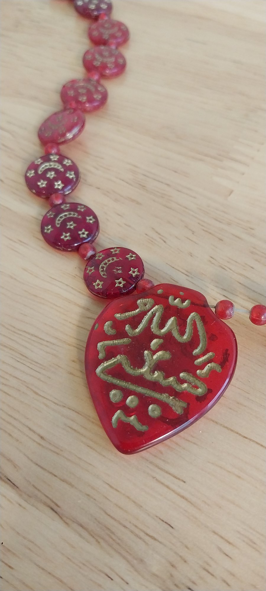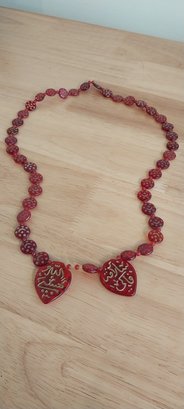 Red glass Islamic Hajj trade beaded necklace 14" long