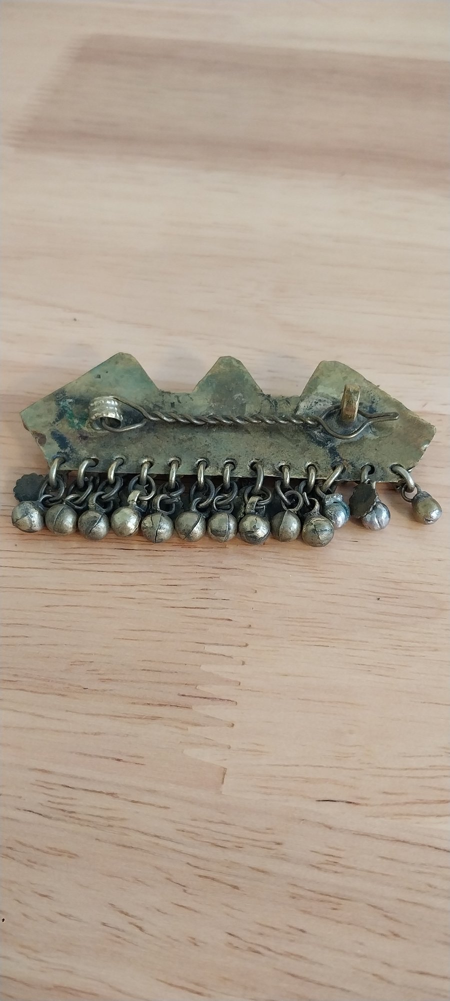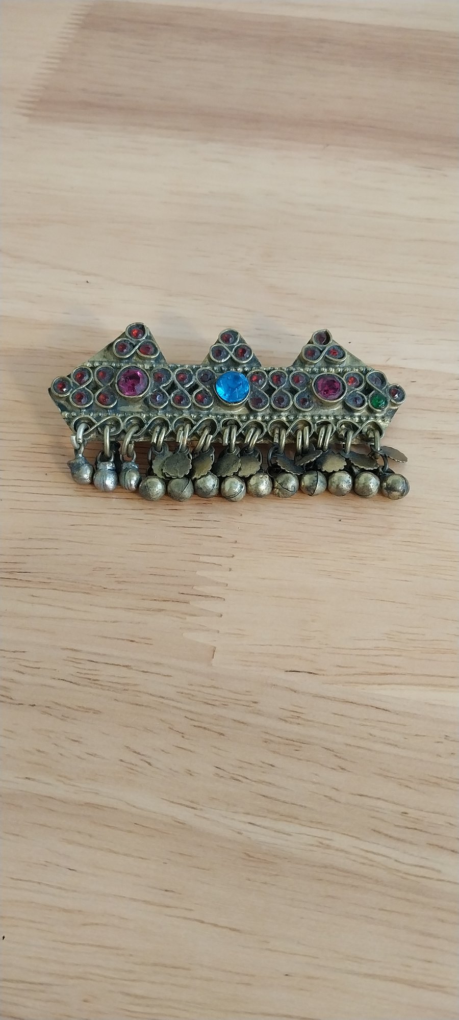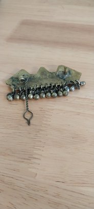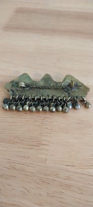 Vintage Afghan Kuchi barrette. Brass with glass beads. 3"