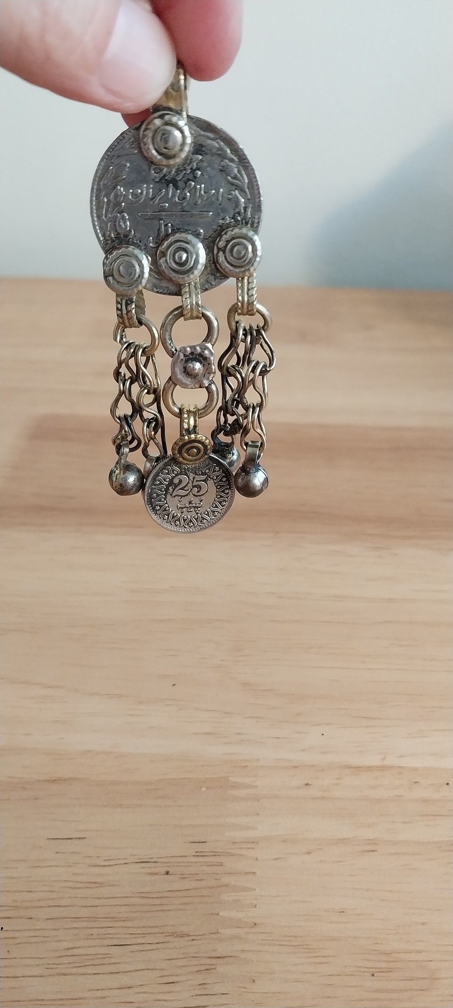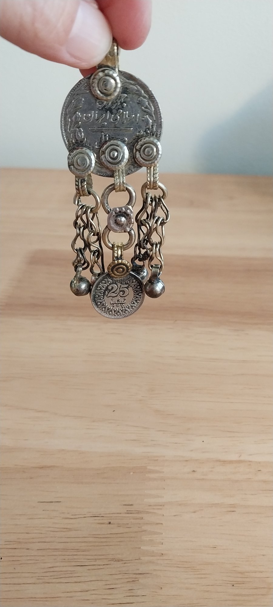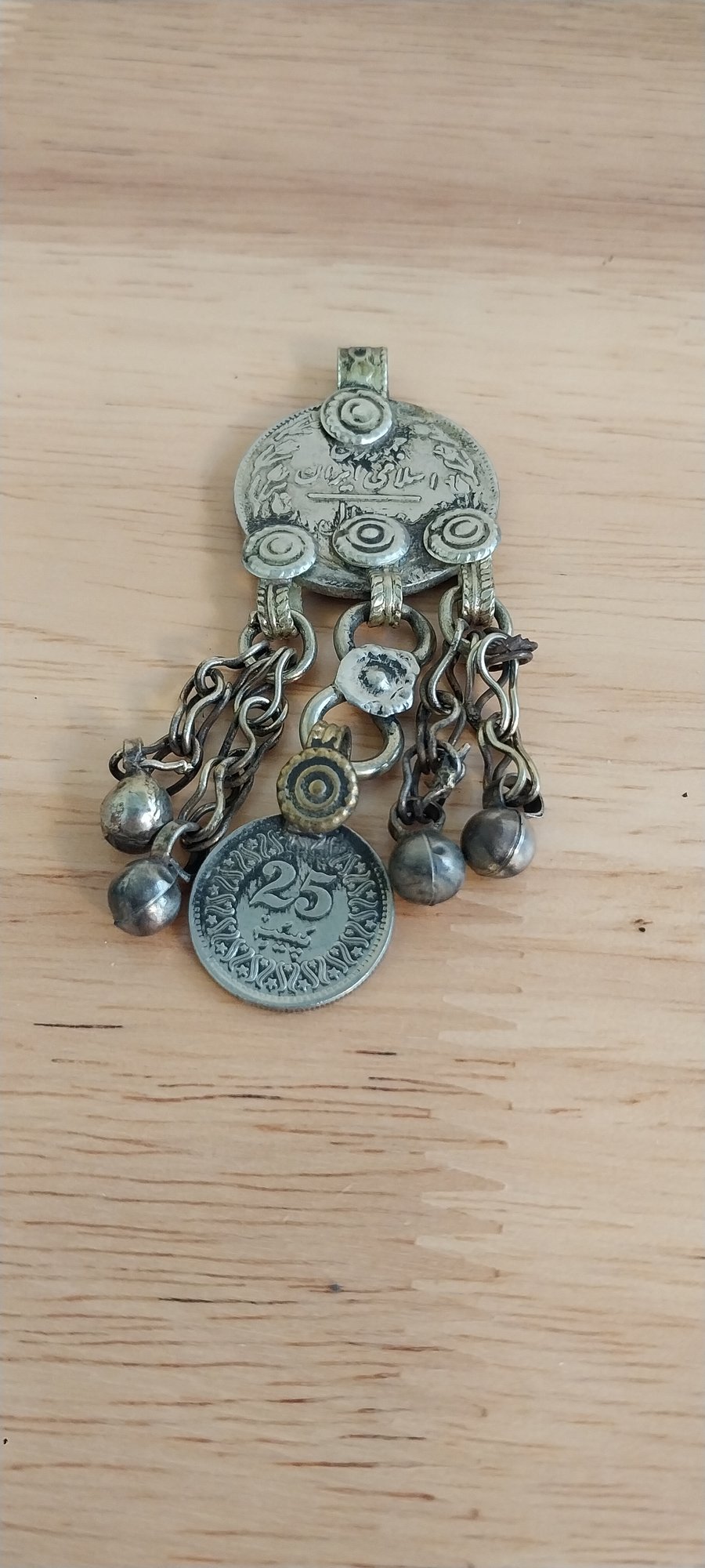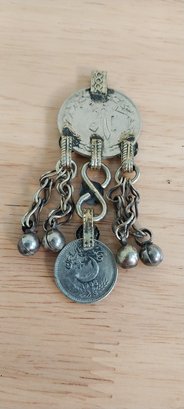 Vintage Kuchi pendant. Metal coin with large bail top. 3"
