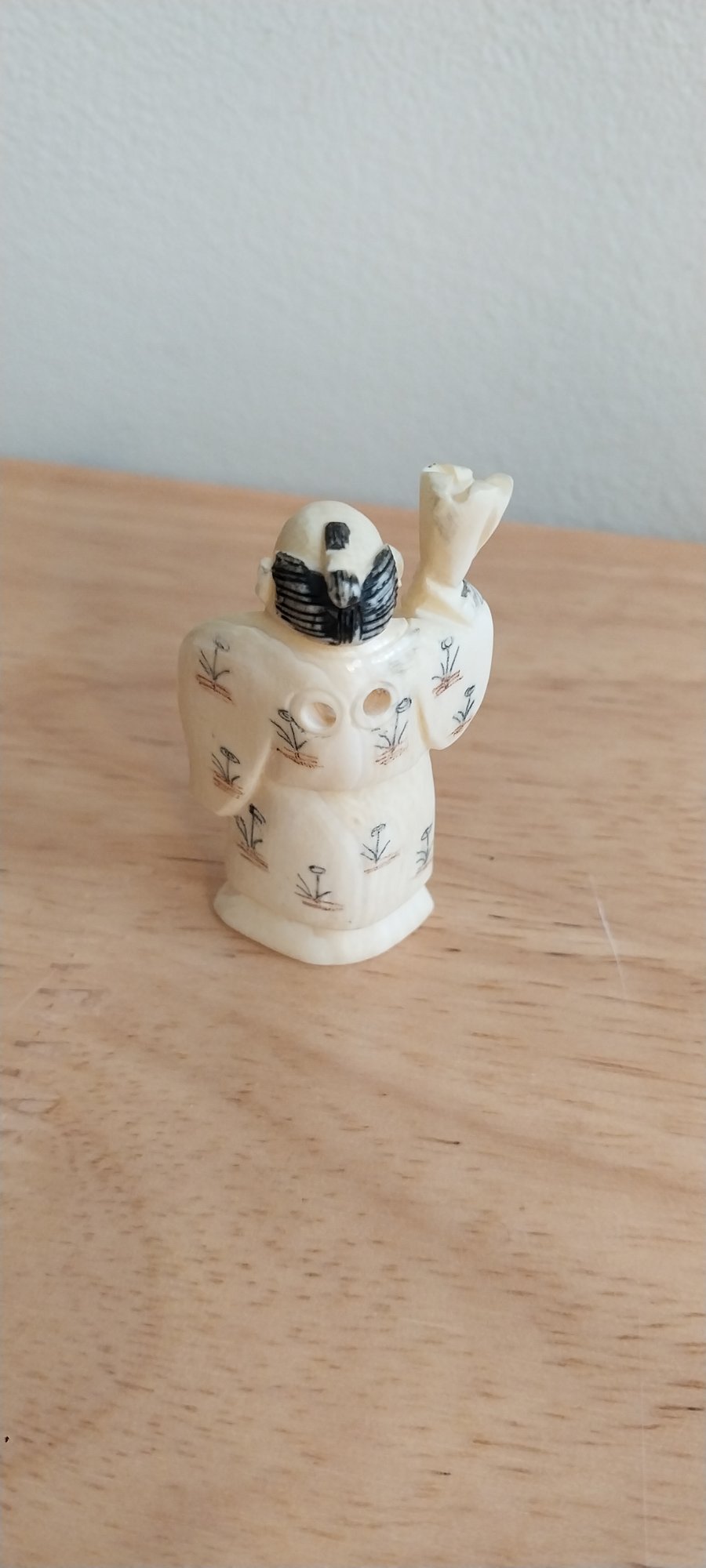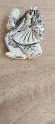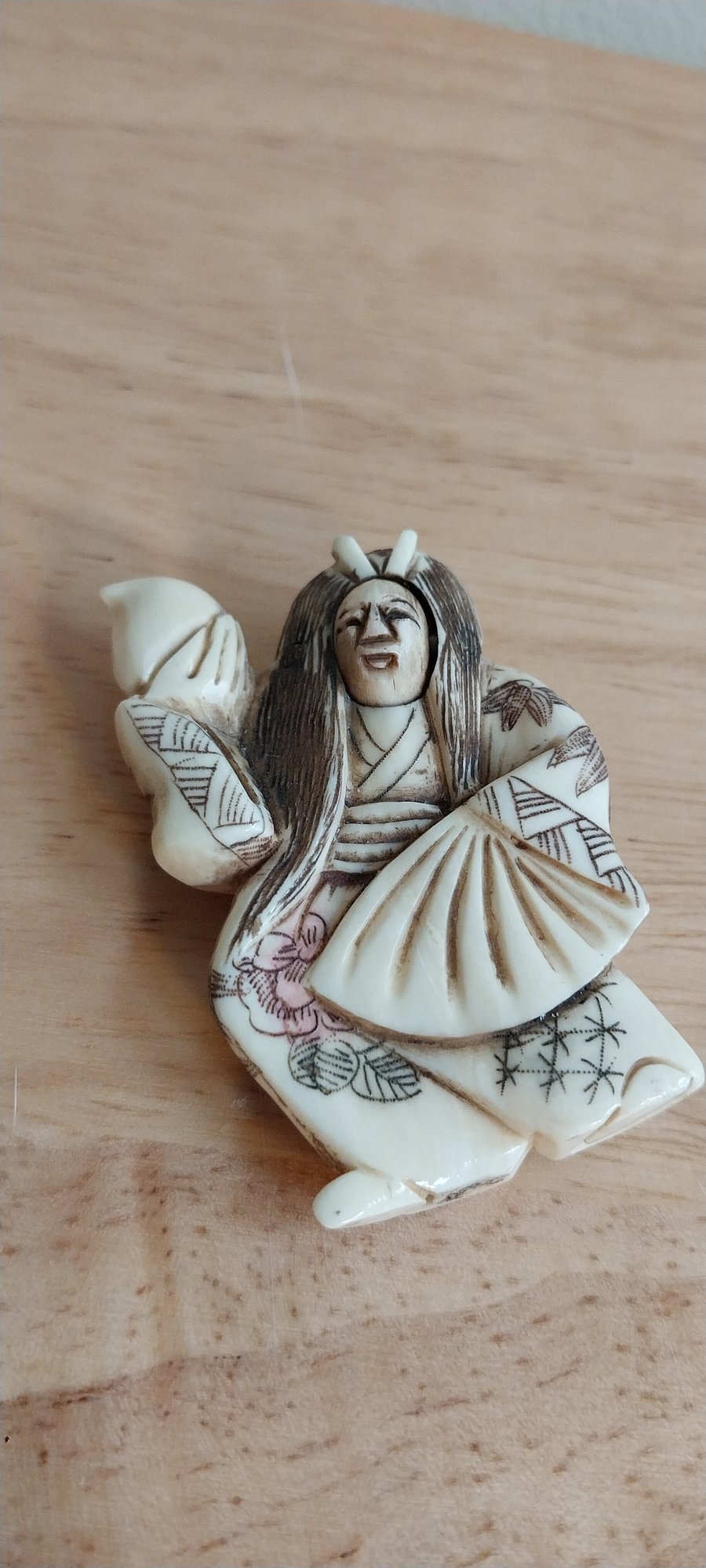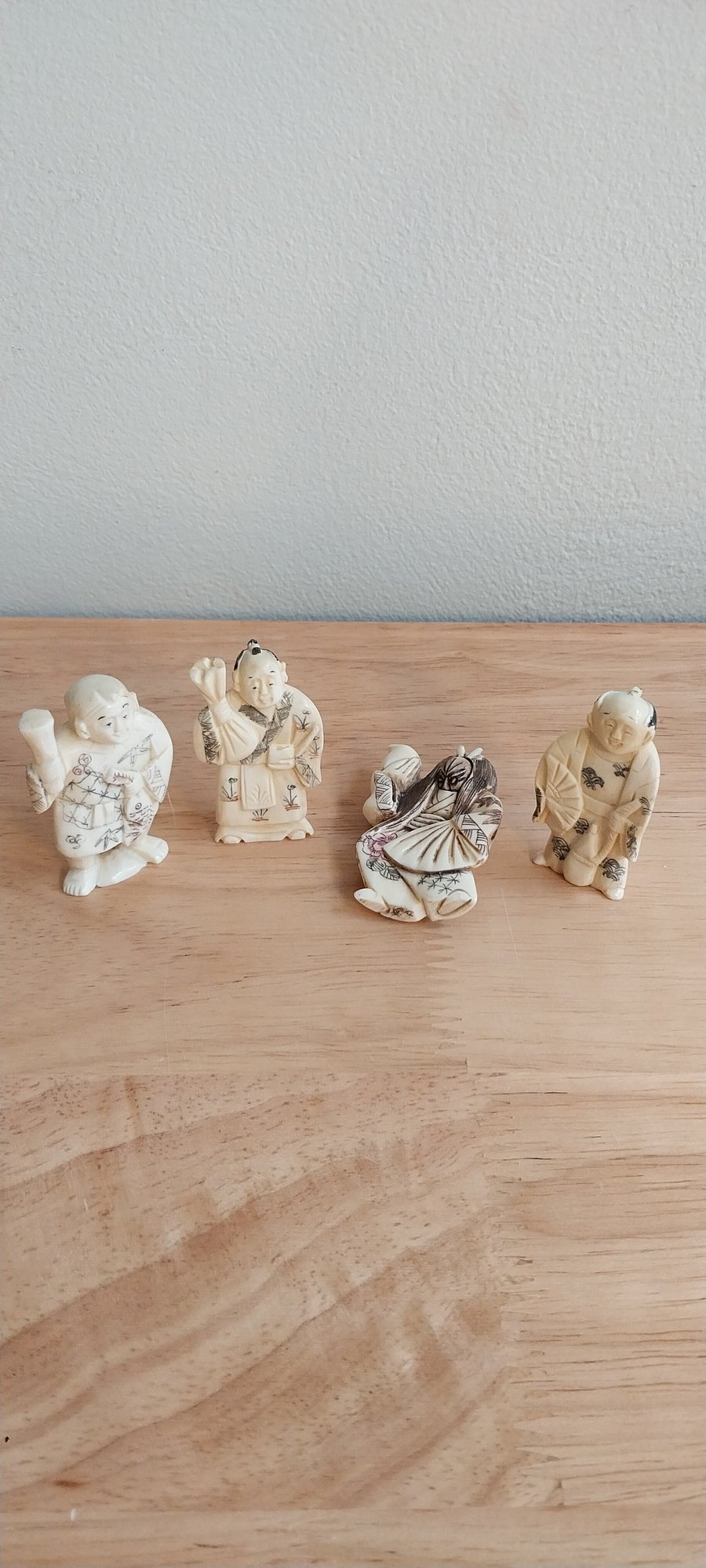 (4) Vintage Japanese Netsuke Beads of Dancers with Fans.