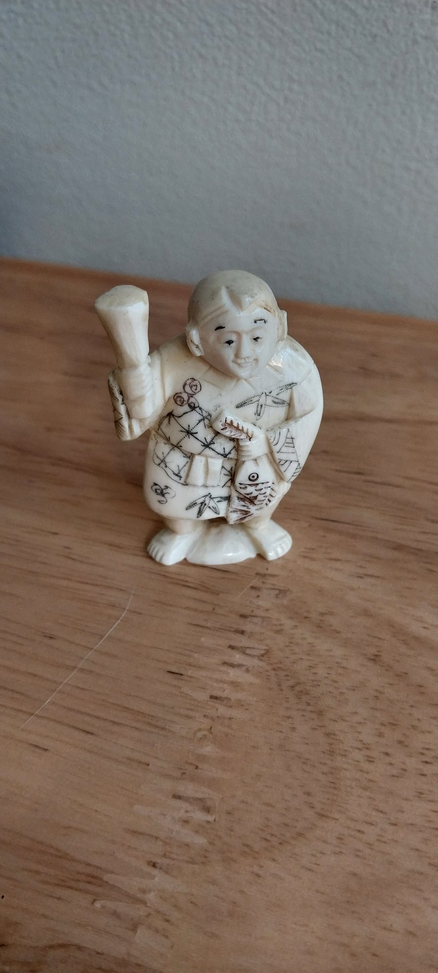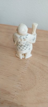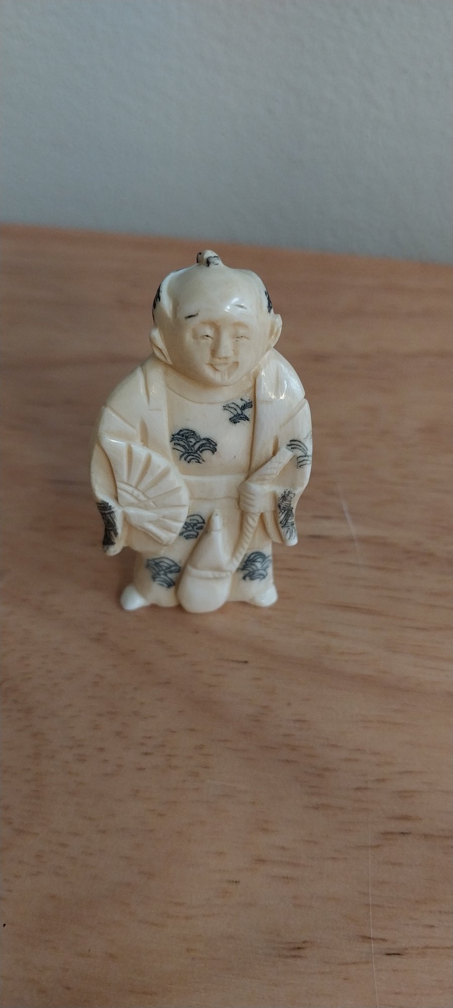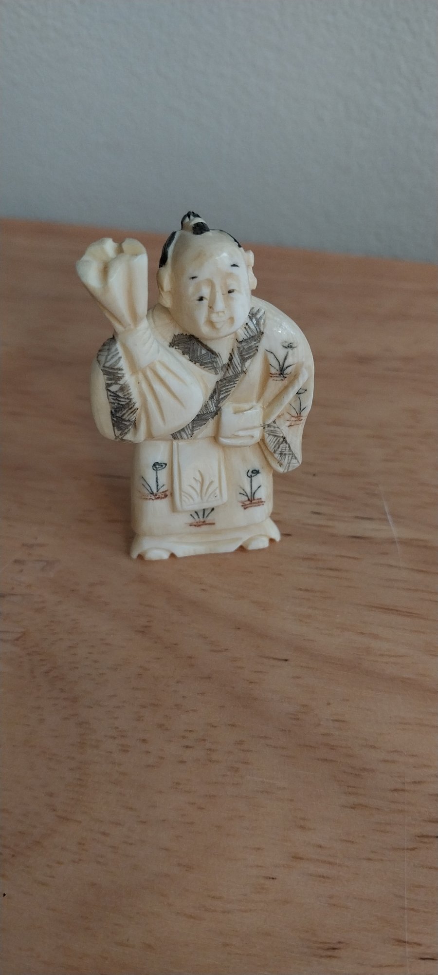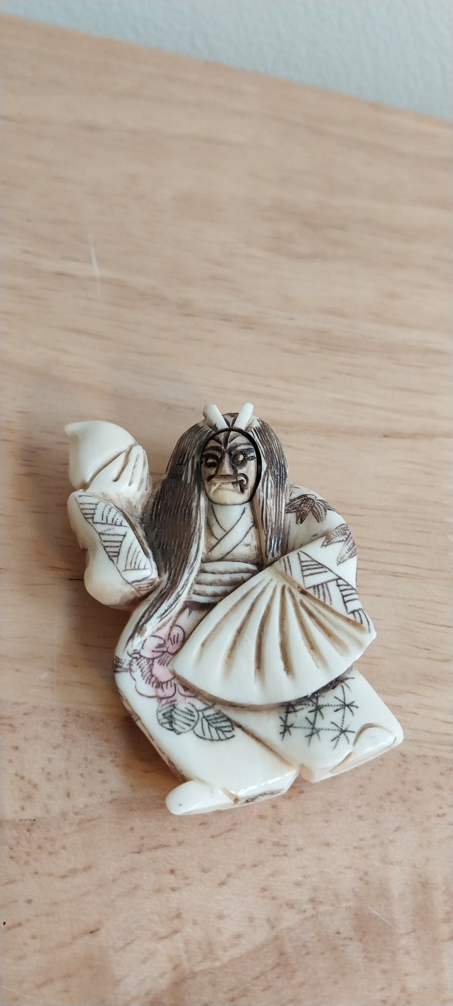 (4) Vintage Japanese Netsuke Beads of Dancers with Fans.